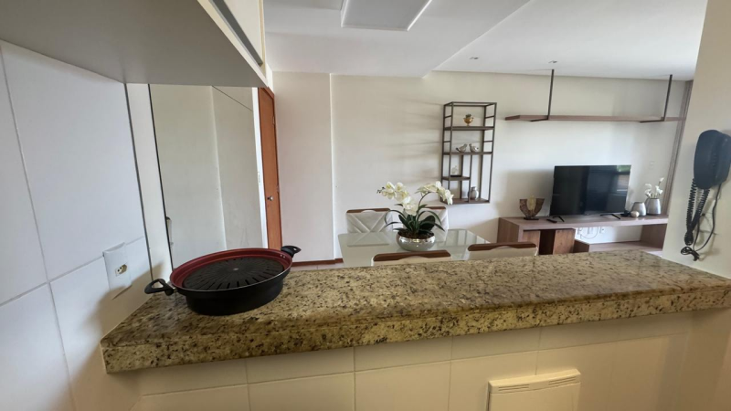 Excelente apartamento para locação em Alphaville1, 01 quarto, 50m2 de área privativa, mobiliado, climatizado, banheiro social, sala ampla, varanda com fechamento em Reiki, , cozinha e área de serviço, 01 vaga de garagem.