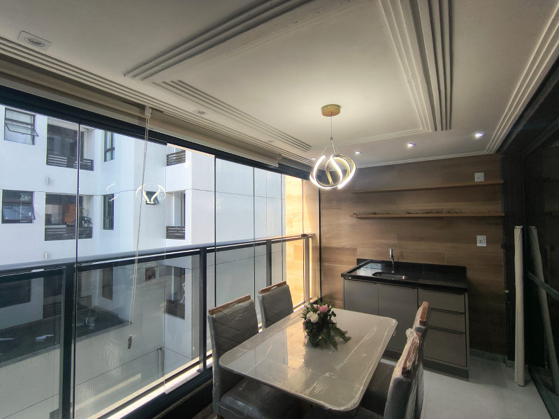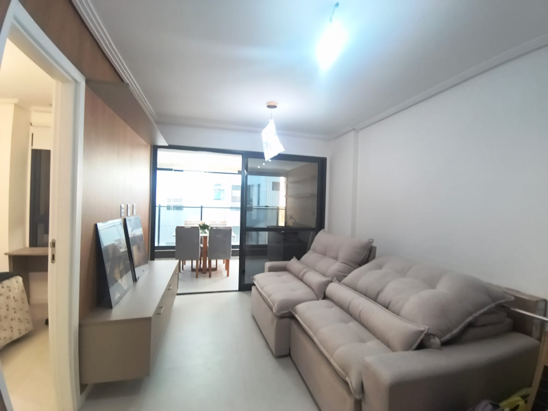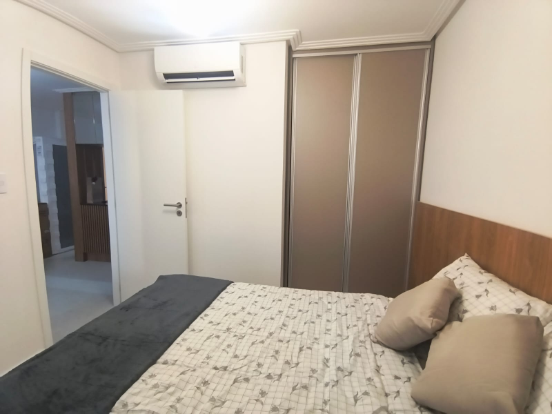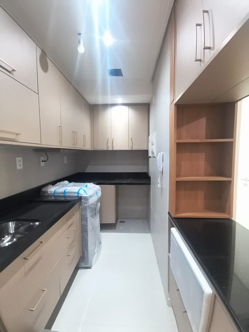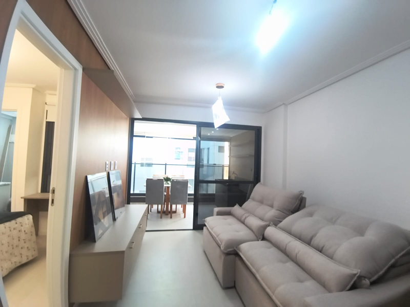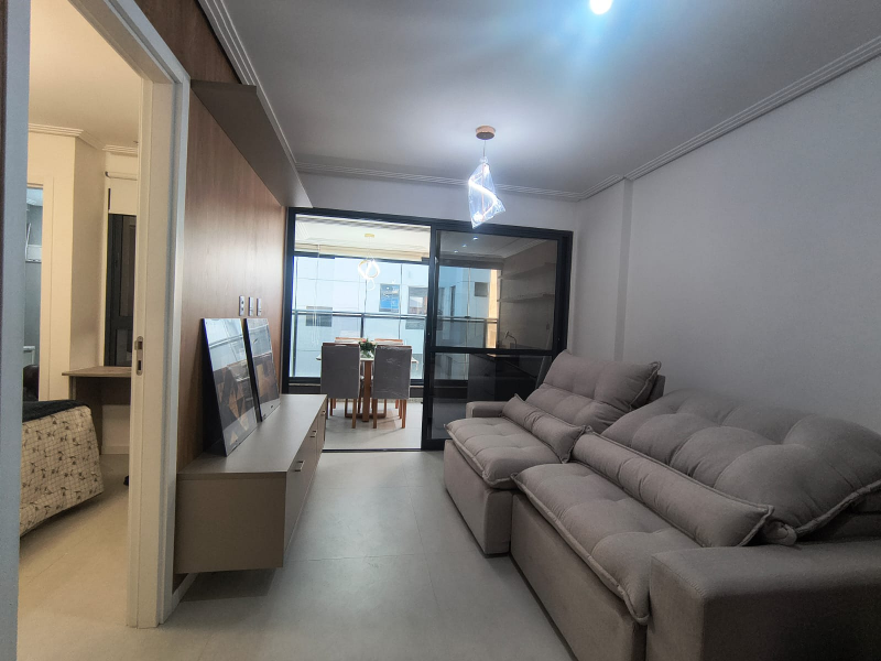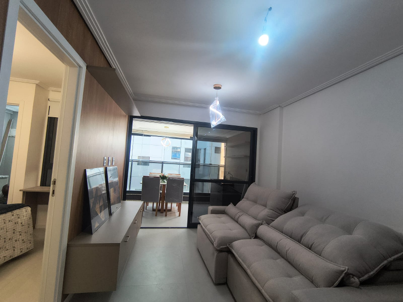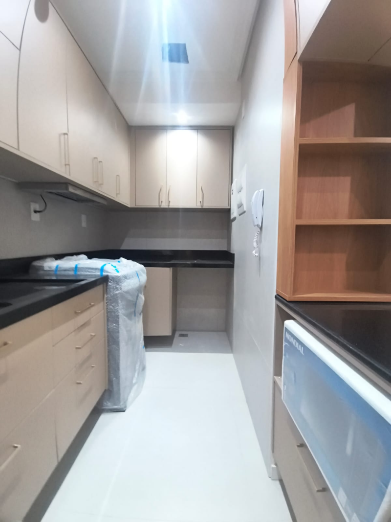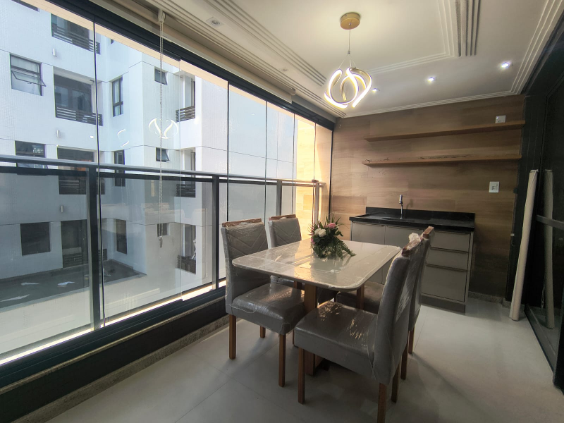 Excelente Apartamento para locação, 01 Quarto, 02 banheiros, 55m2 de área privativa, mobiliado sendo uma suíte, lavabo, varanda com pia, porcelanato fosco, varanda com fechamento de vidro, primeira locação, mobiliado com: Geladeira, fogão, forno, microondas, ar condicionado, lava e seca, armários,