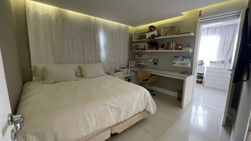 closet na suíte principal, Salas amplas, varanda gourmet com churrasqueira, dependência completa, 02 vagas de garagem. Condomínio com infraestrutura completa: piscina com raia e infantil, brinquedoteca, quadra, salão de festa, sala de estudo, sala de cinema, SPA, portaria 24 horas.