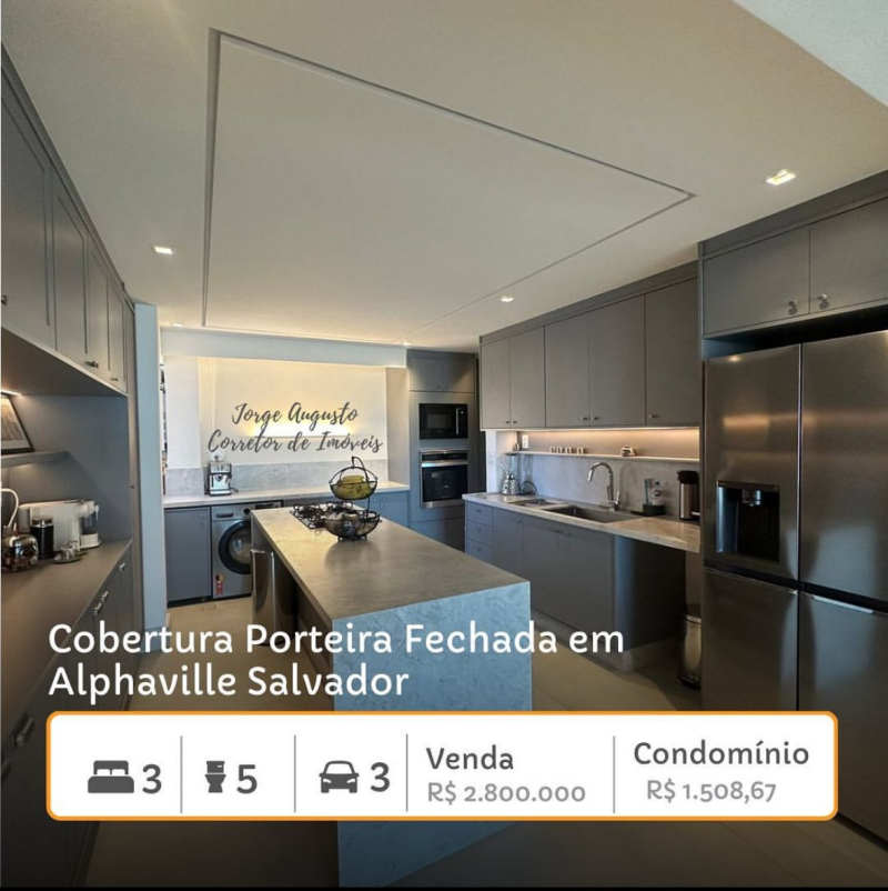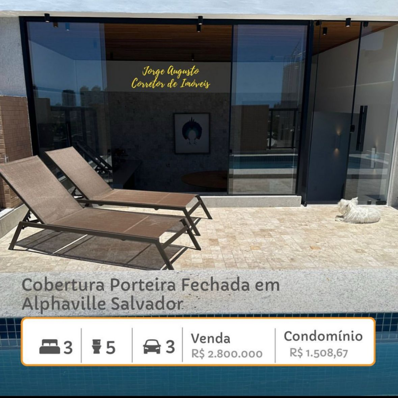Alphaville1, Cobertura Mobiliada Para Venda, 03 Quartos, 220m2, Salvador/BA.