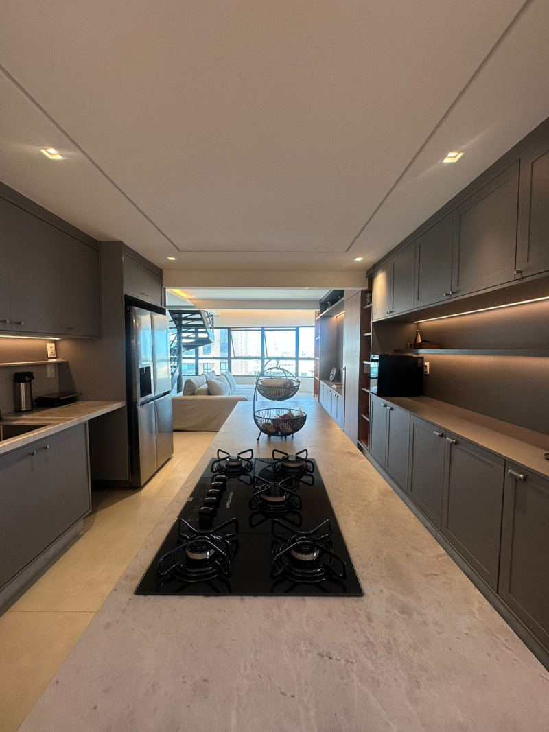 Todos os ambientes possuem projeto de iluminação, armários planejados e móveis de alto padrão.