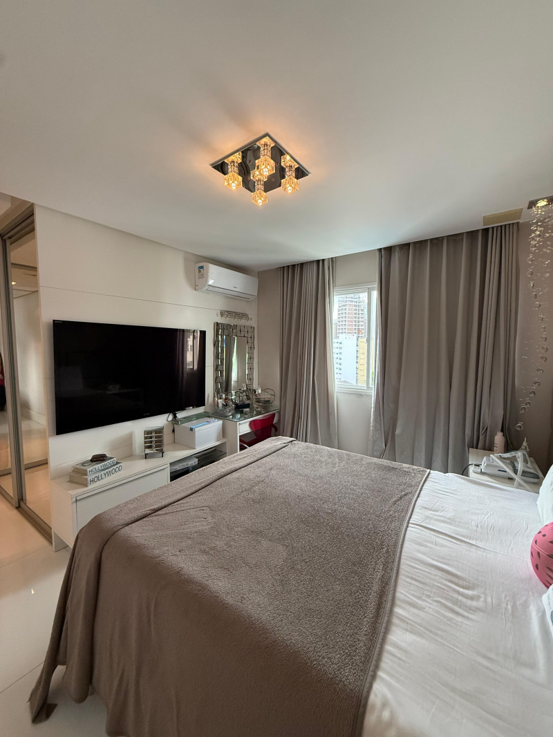 Excelente apartamento para venda, Porteira Fechada (exceto objetos de decoração e máquina de lavar),181m², de área privativa, andar alto, 04 quartos, sendo 02 suítes, varanda gourmet com fechamento em Reiki, lavabo, roupeiro, sanitário social, armários planejados, dependência completa de empregada, área de serviço.