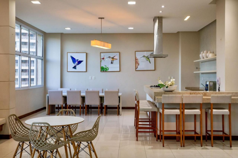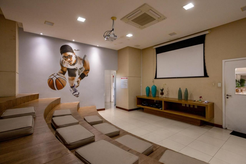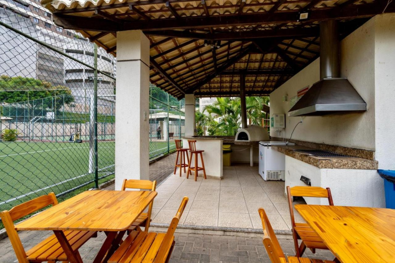 Infraestrutura de lazer: Piscina, 03 quiosques equipados com churrasqueira e forno de pizza, sauna , cinema privativo, brinquedoteca, sala de estudo que salão de festas, stadium, wine lounge, quadra poliesportiva , campo com gramado sintético para praticar esportes ao ar livre.
