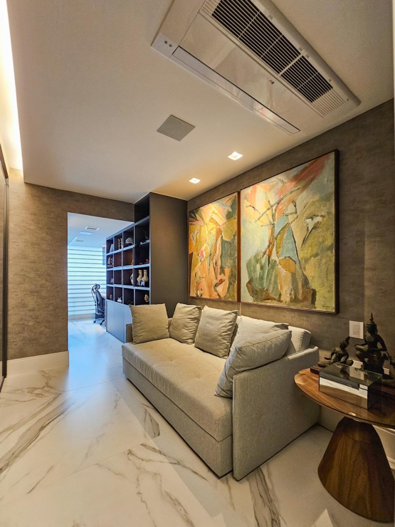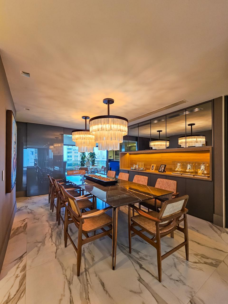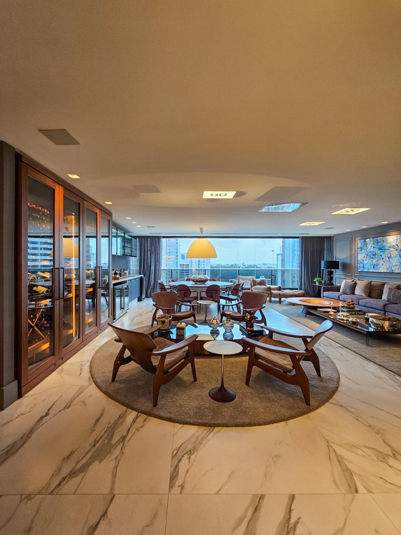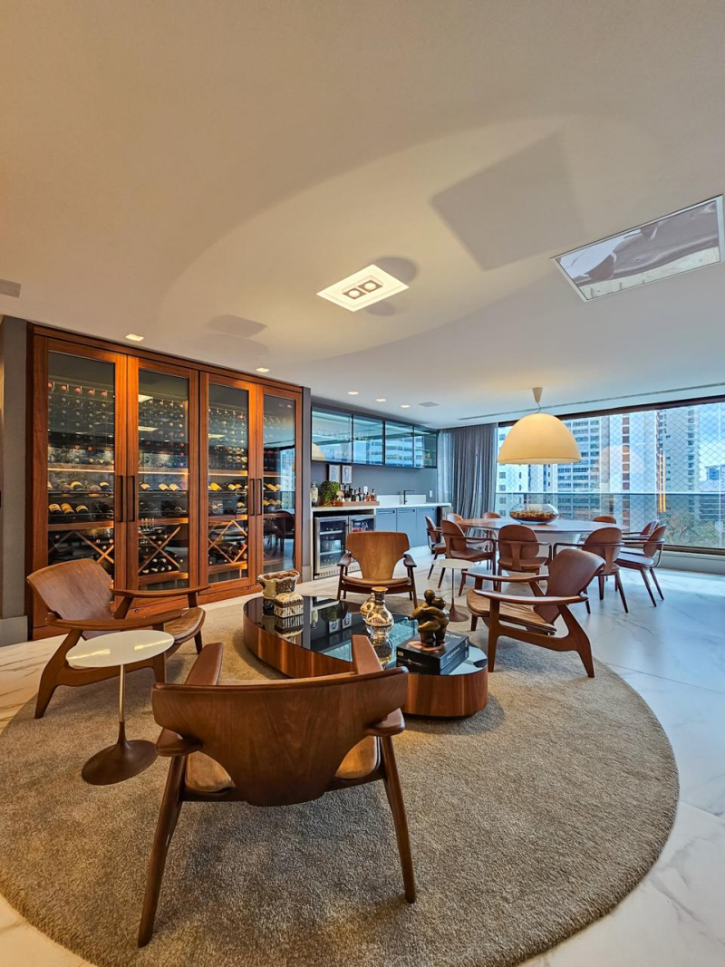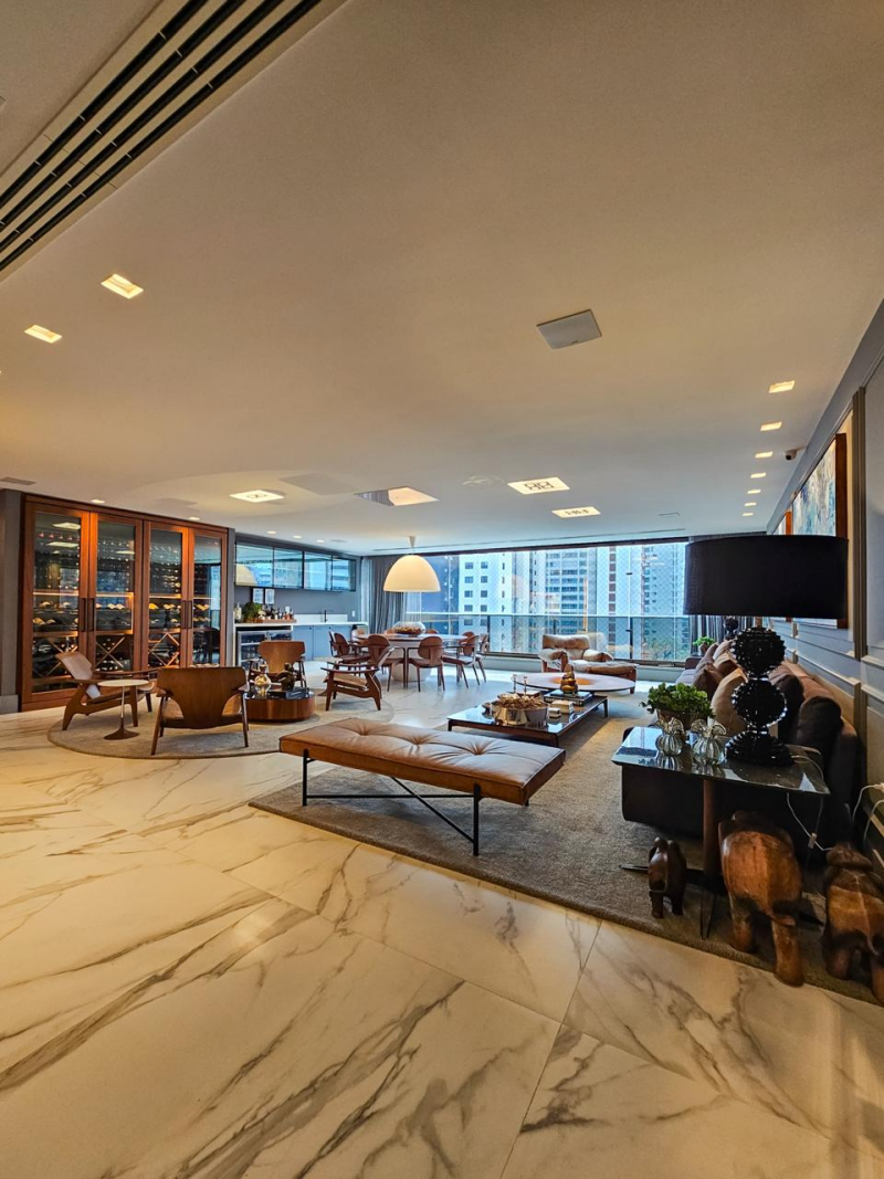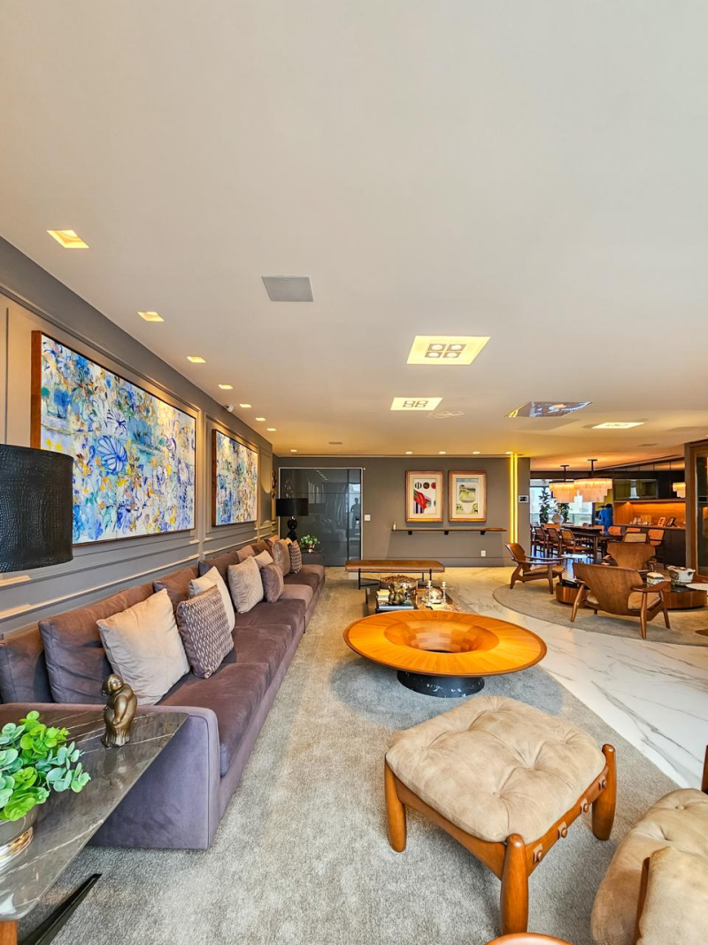 Belíssimo Apartamento com planta original de 04 suítes, máster com closet, 305m² de área privativa, 06 banheiros, imóvel finamente decorado, varanda incorporada, alto padrão de acabamento, armários em todos os cômodos, Portas Cinex, Ar-condicionado central em todos os ambientes, inclusive cozinha e copa, automação residencial completa, living e sala de estar amplos, integrados à varanda, cozinha com varanda gourmet integrada e despensa, adega Arte Decaves, cervejeira e adegas Eletromec e Electrolux, móveis assinados por Sérgio Rodrigues e Jader Almeida (Home Design), bancadas em Super Nanoglass e lavabo em mármore italiano, dependência completa de serviço, 04 vagas de garagem e depósito.