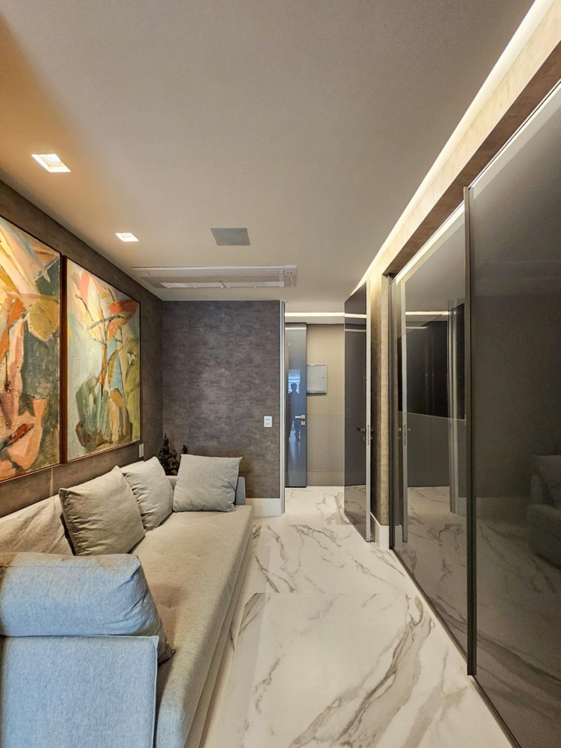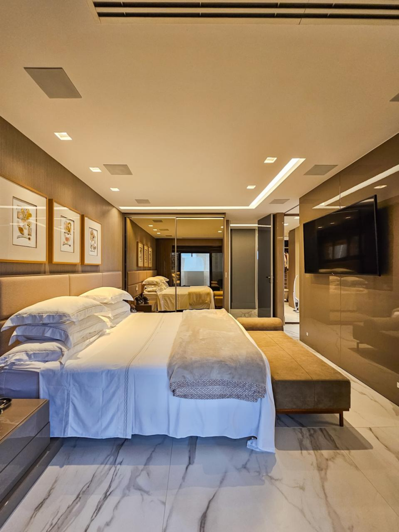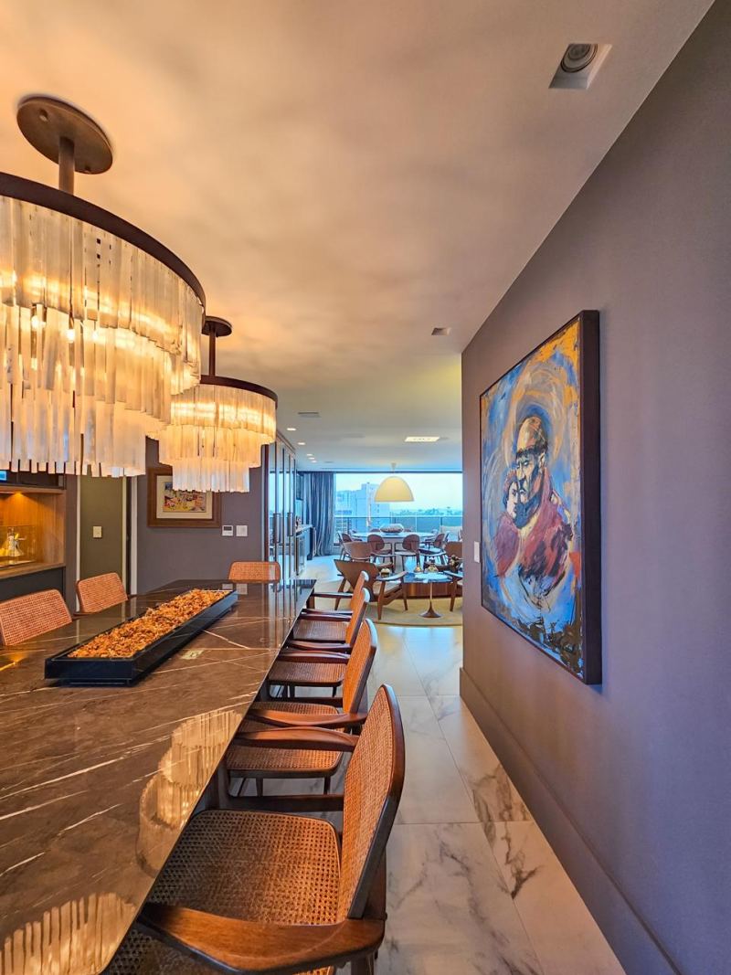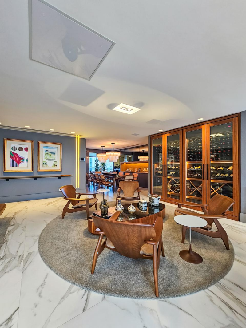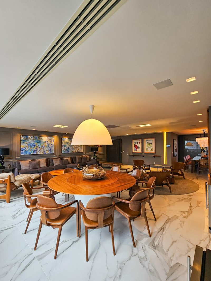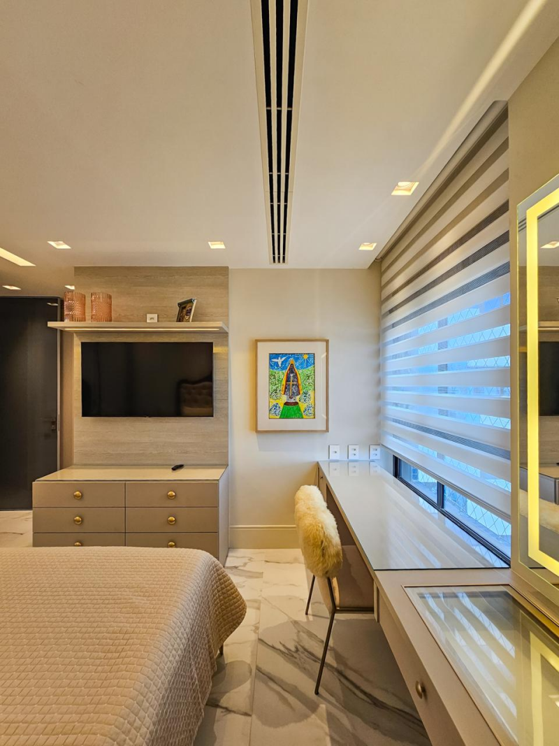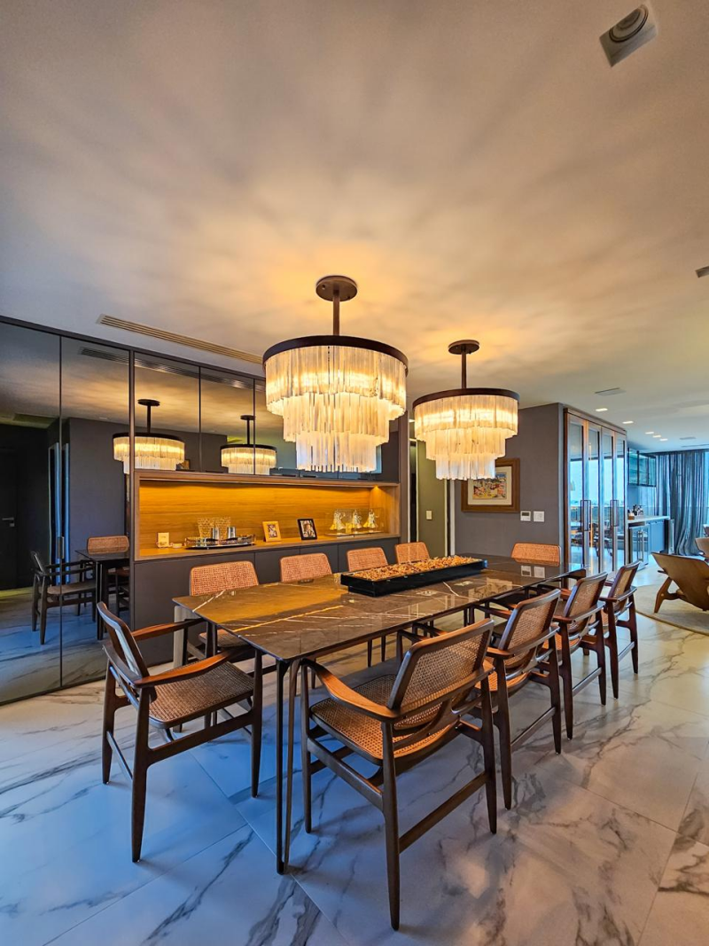 Belíssimo Apartamento com planta original de 04 suítes, máster com closet, 305m² de área privativa, 06 banheiros, imóvel finamente decorado, varanda incorporada, alto padrão de acabamento, armários em todos os cômodos, Portas Cinex, Ar-condicionado central em todos os ambientes, inclusive cozinha e copa, automação residencial completa, living e sala de estar amplos, integrados à varanda, cozinha com varanda gourmet integrada e despensa, adega Arte Decaves, cervejeira e adegas Eletromec e Electrolux, móveis assinados por Sérgio Rodrigues e Jader Almeida (Home Design), bancadas em Super Nanoglass e lavabo em mármore italiano, dependência completa de serviço, 04 vagas de garagem e depósito.