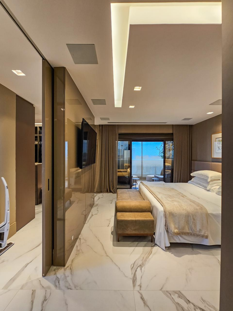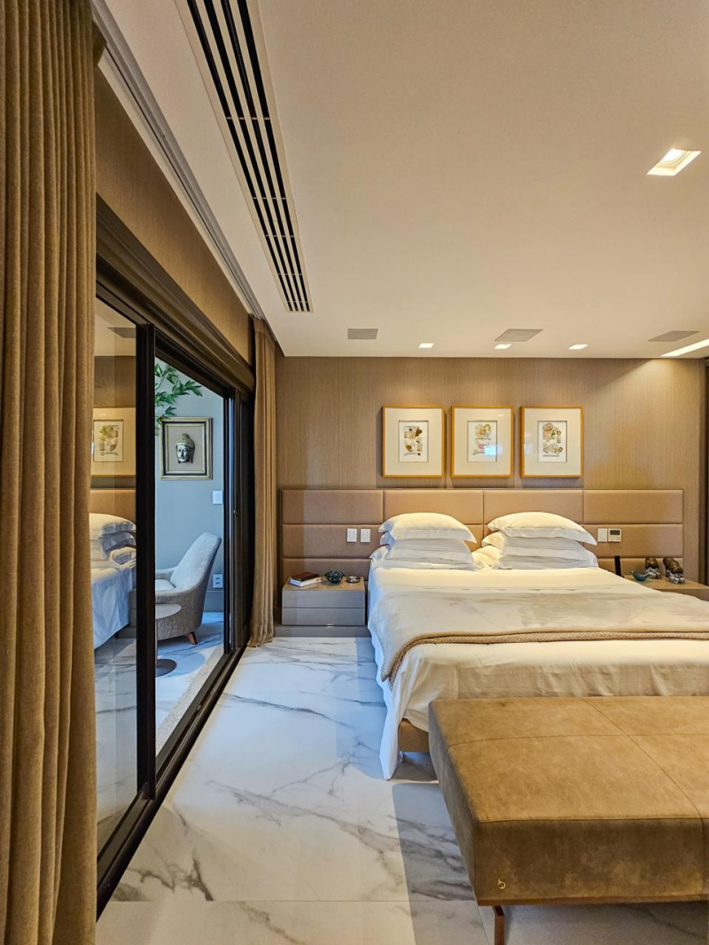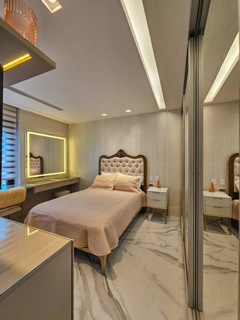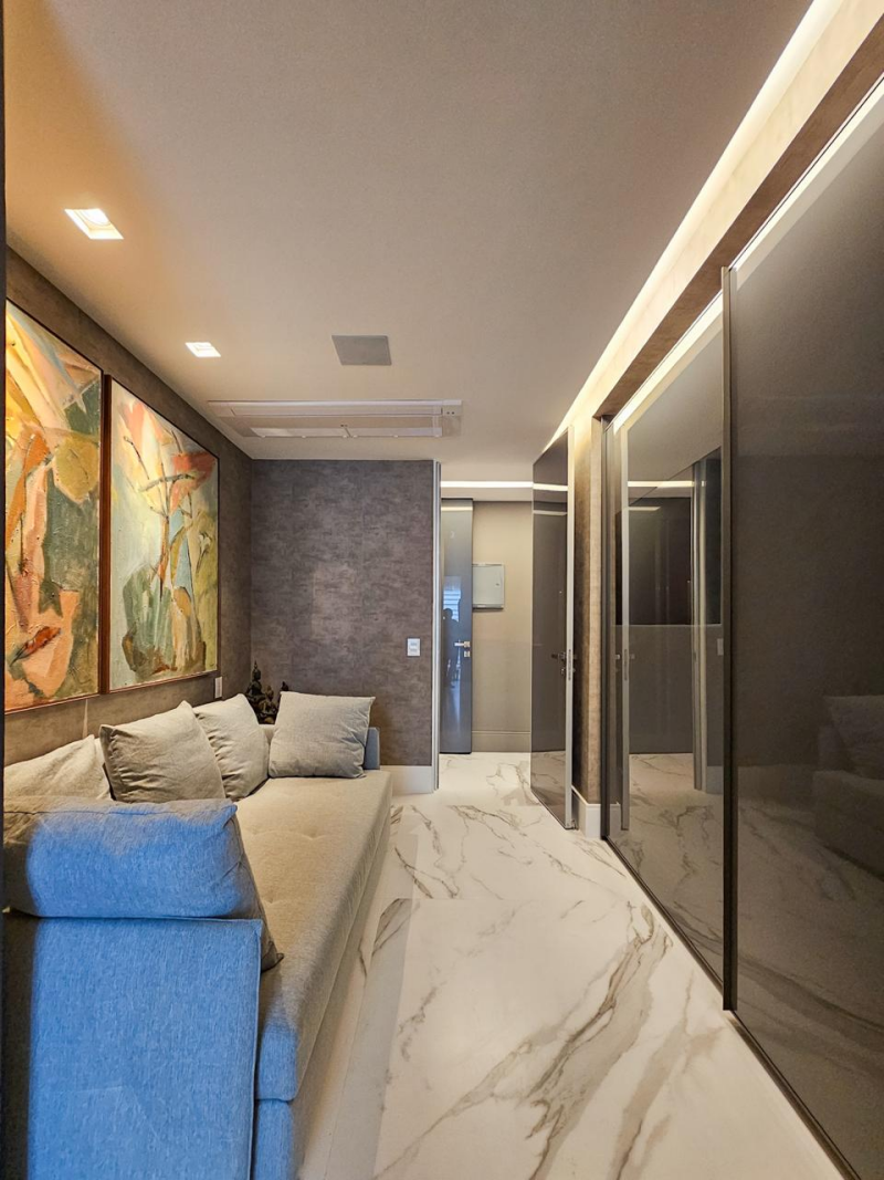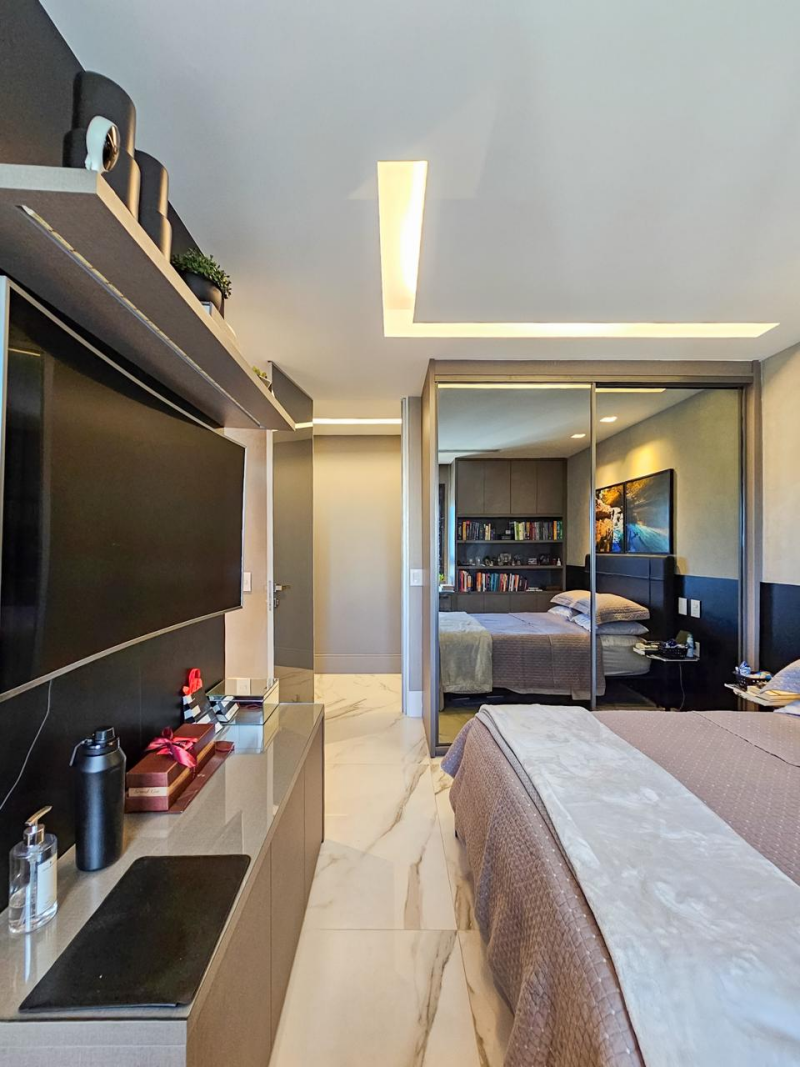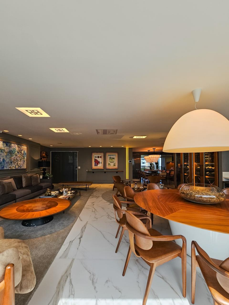 Belíssimo Apartamento com planta original de 04 suítes, máster com closet, 305m² de área privativa, 06 banheiros, imóvel finamente decorado, varanda incorporada, alto padrão de acabamento, armários em todos os cômodos, Portas Cinex, Ar-condicionado central em todos os ambientes, inclusive cozinha e copa, automação residencial completa, living e sala de estar amplos, integrados à varanda, cozinha com varanda gourmet integrada e despensa, adega Arte Decaves, cervejeira e adegas Eletromec e Electrolux, móveis assinados por Sérgio Rodrigues e Jader Almeida (Home Design), bancadas em Super Nanoglass e lavabo em mármore italiano, dependência completa de serviço, 04 vagas de garagem e depósito.