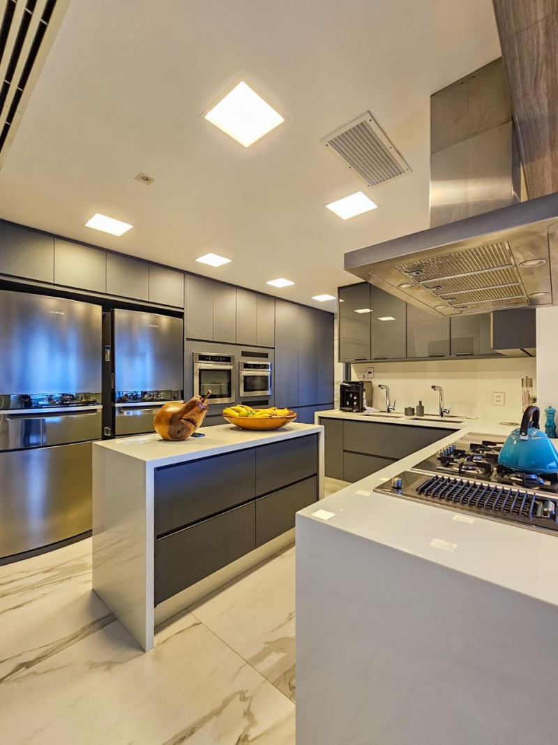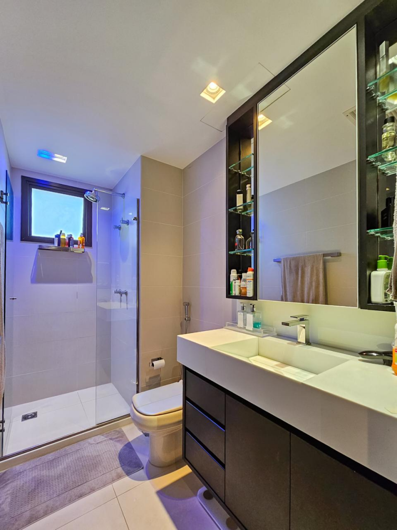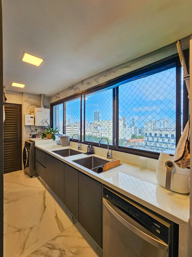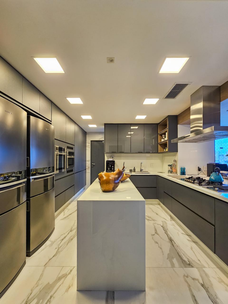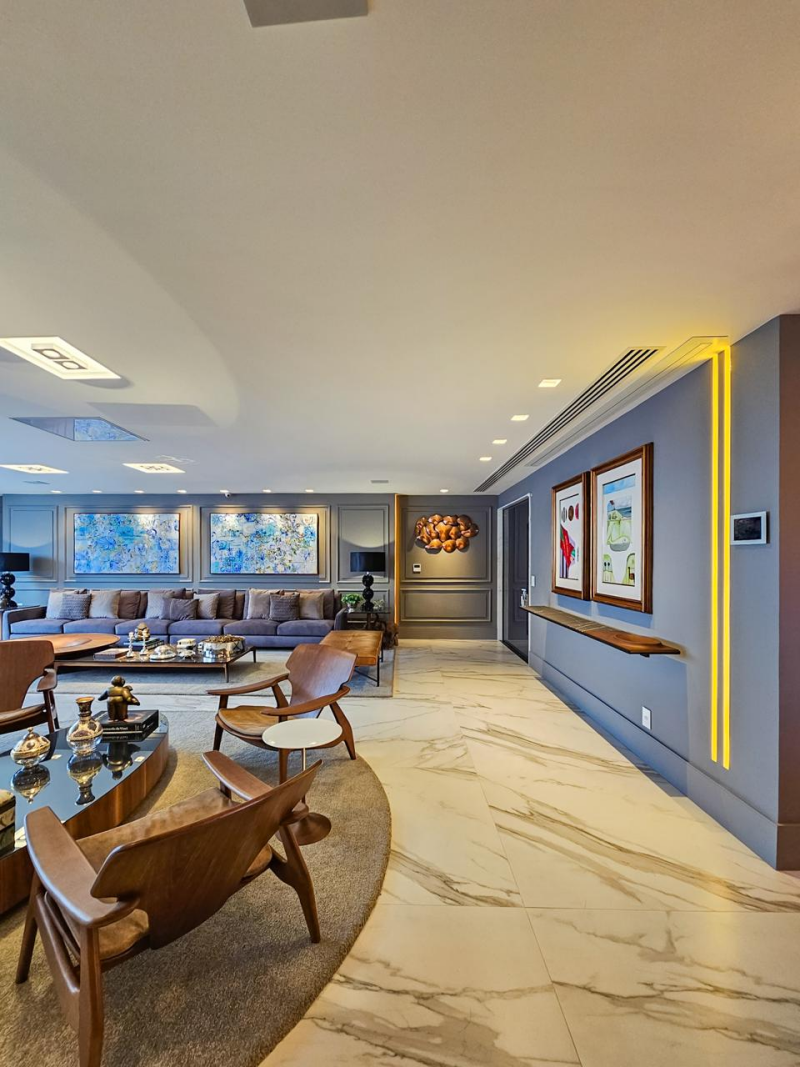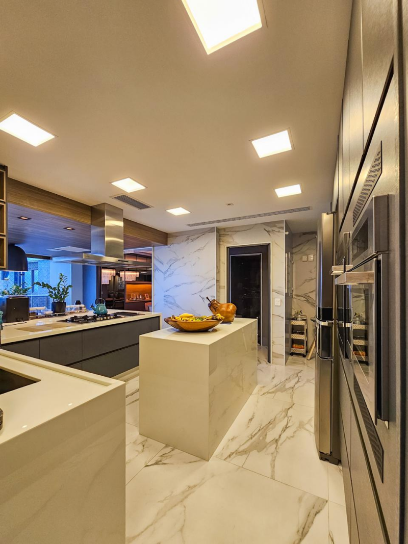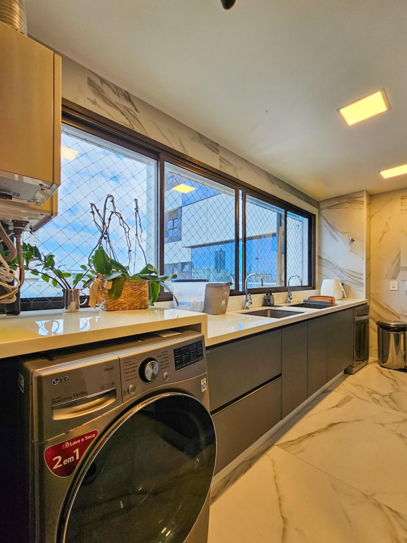 Belíssimo Apartamento com planta original de 04 suítes, máster com closet, 305m² de área privativa, 06 banheiros, imóvel finamente decorado, varanda incorporada, alto padrão de acabamento, armários em todos os cômodos, Portas Cinex, Ar-condicionado central em todos os ambientes, inclusive cozinha e copa, automação residencial completa, living e sala de estar amplos, integrados à varanda, cozinha com varanda gourmet integrada e despensa, adega Arte Decaves, cervejeira e adegas Eletromec e Electrolux, móveis assinados por Sérgio Rodrigues e Jader Almeida (Home Design), bancadas em Super Nanoglass e lavabo em mármore italiano, dependência completa de serviço, 04 vagas de garagem e depósito.