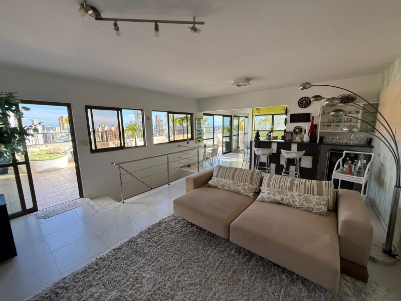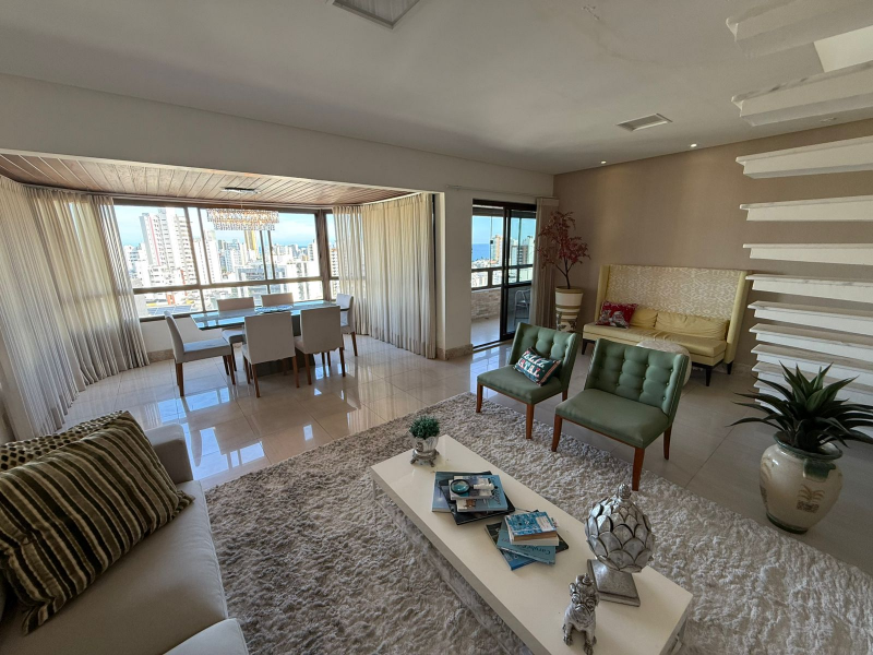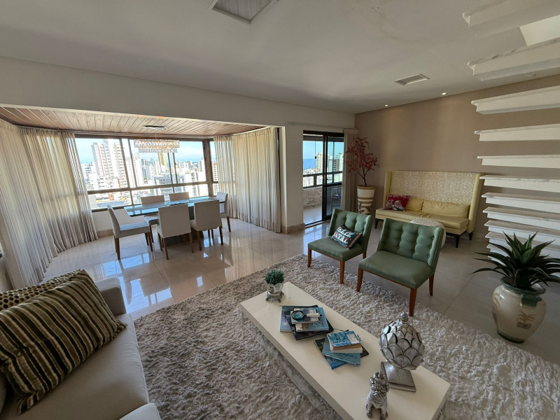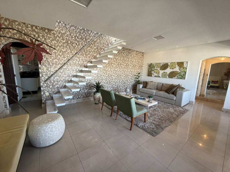 Excelente apartamento de Cobertura Duplex, Semi Mobiliado, 272m2 de área privativa, Nascente, 04 quartos com 04 suítes, ar condicionado tipo split nos quartos, dependência completa de empregada, cozinha planejada, sala de estar, sala de jantar, sala de tv, bar, terraço com churrasqueira, lavabos, 6 banheiros, piscina privativa, piso em Porcelanato na sala, escada tipo flutuante, imóvel reformado, armários planejados, projeto de decoração e iluminação, 03 vagas soltas e cobertas, armário na garagem.