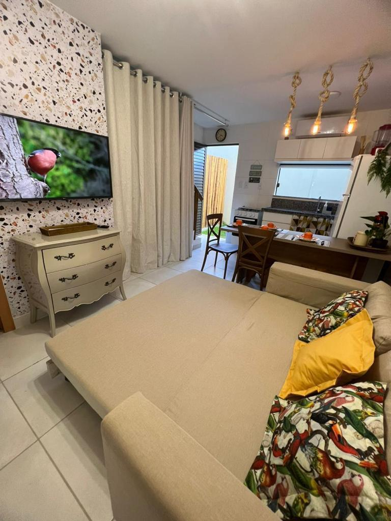 Excelente Village para venda, 48m², de área privativa, 01 quarto com suíte, a 1,2 Km da Praia. Sala integrada à cozinha, lavabo e área de serviço, totalmente mobiliado, pronto para morar ou investir. Apartamento duplex, moderno, compacto e funcional. Infraestrujtura: Piscina, área gourmet, estacionamento privativo, portão
