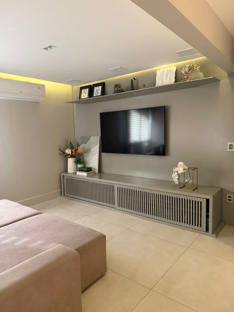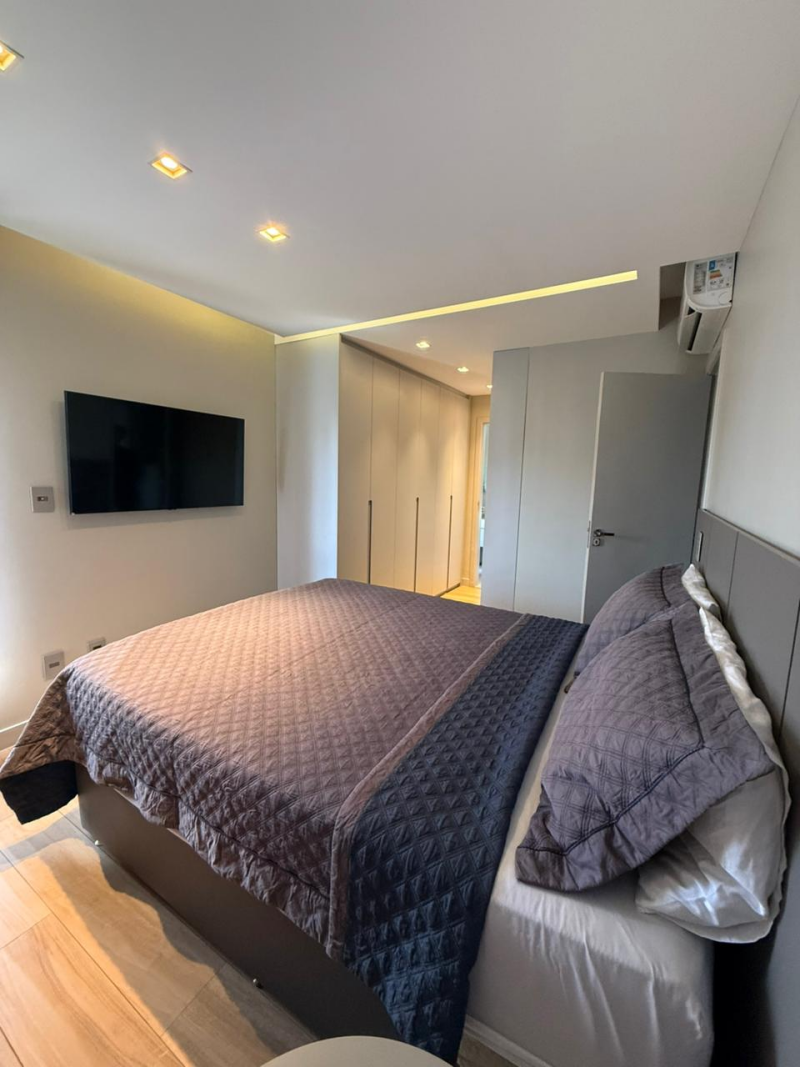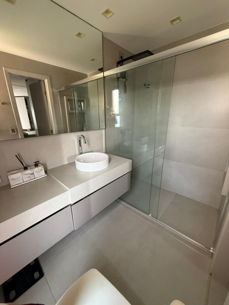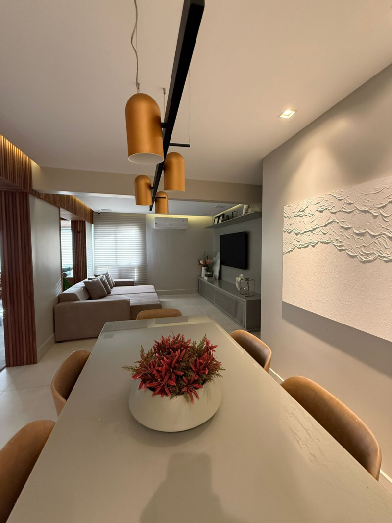 Excelente apartamento para venda, 03 quartos sendo 02 suítes, varanda integrada à sala de estar, sala de jantar e um exclusivo Home Theater, piso em porcelanato, revestimentos decorativos selecionados e armários planejados de altíssima qualidade em todos os cômodos, apartamento totalmente climatizado, cozinha planejada de última geração, área de serviço completa e dependência para funcionários, 02 vagas de garagem cobertas.
