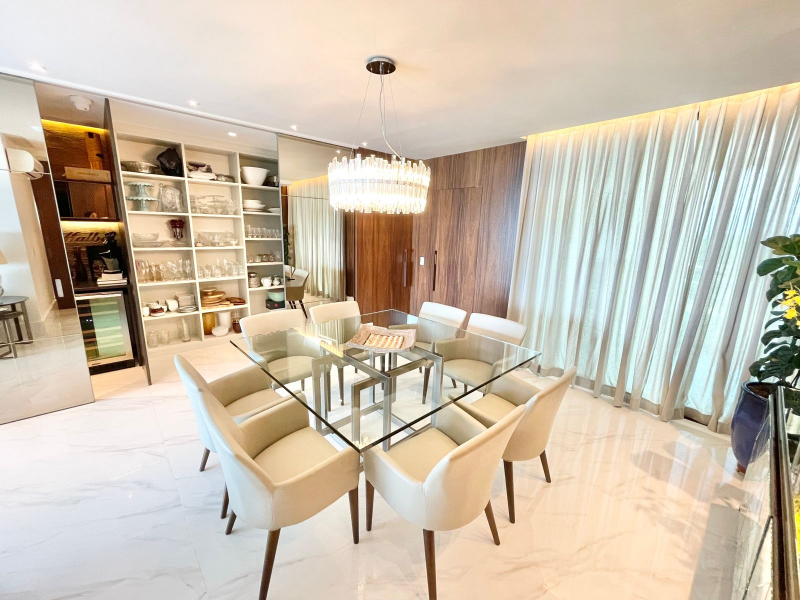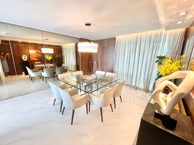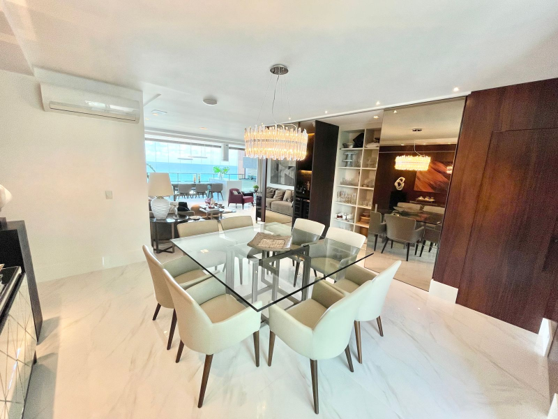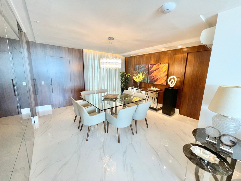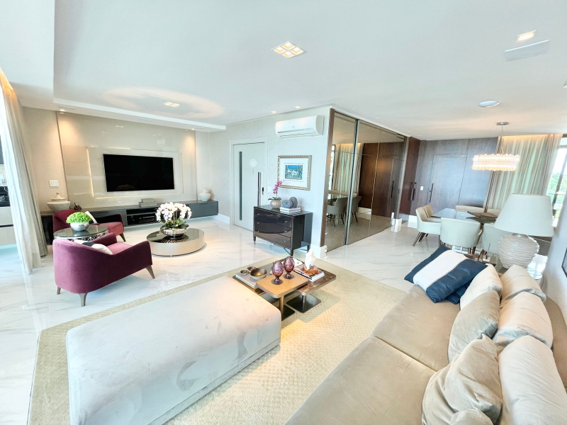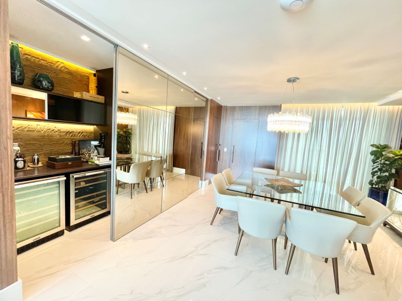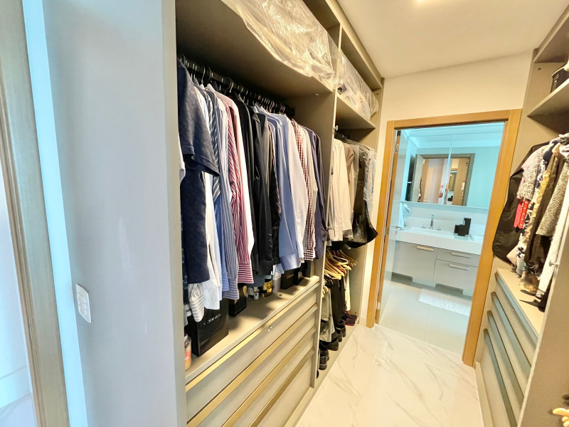 Armários planejados de elevado padrão, portas cinex, climatização em todos os dormitórios, gabinete, sala de estar, jantar e varanda.