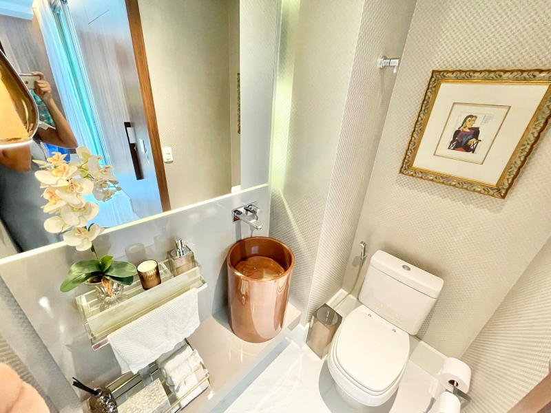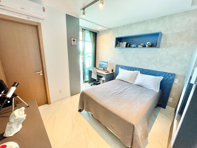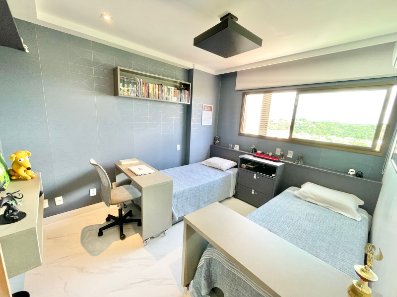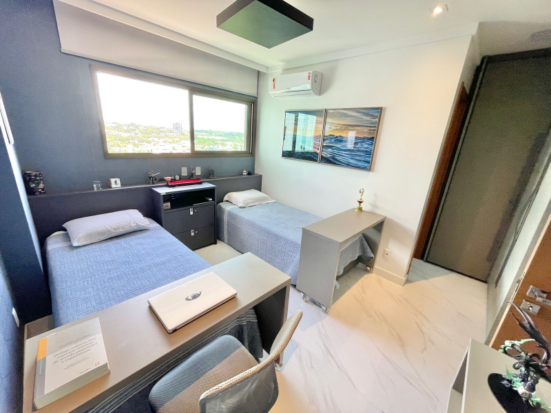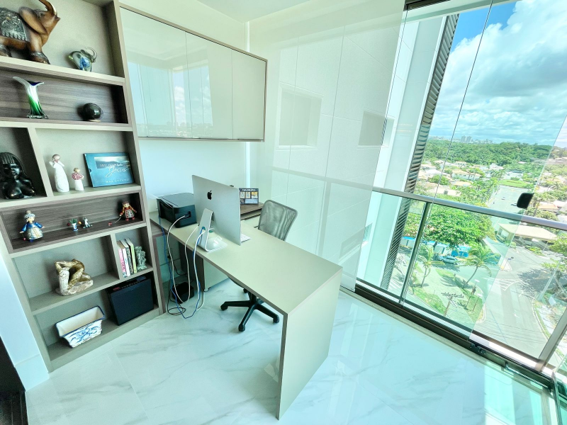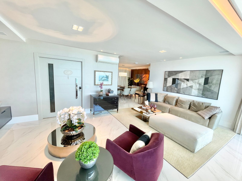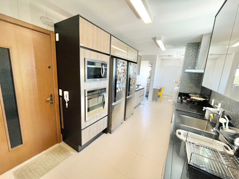 Armários planejados de elevado padrão, portas cinex, climatização em todos os dormitórios, gabinete, sala de estar, jantar e varanda.