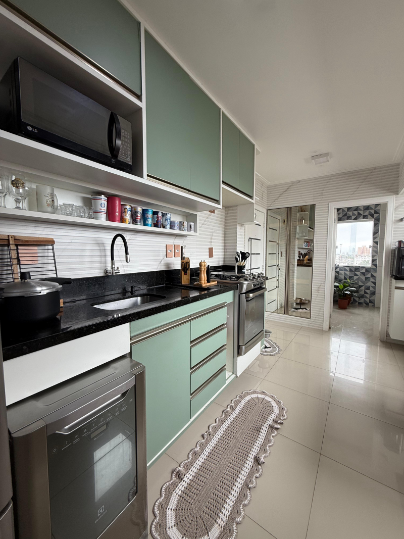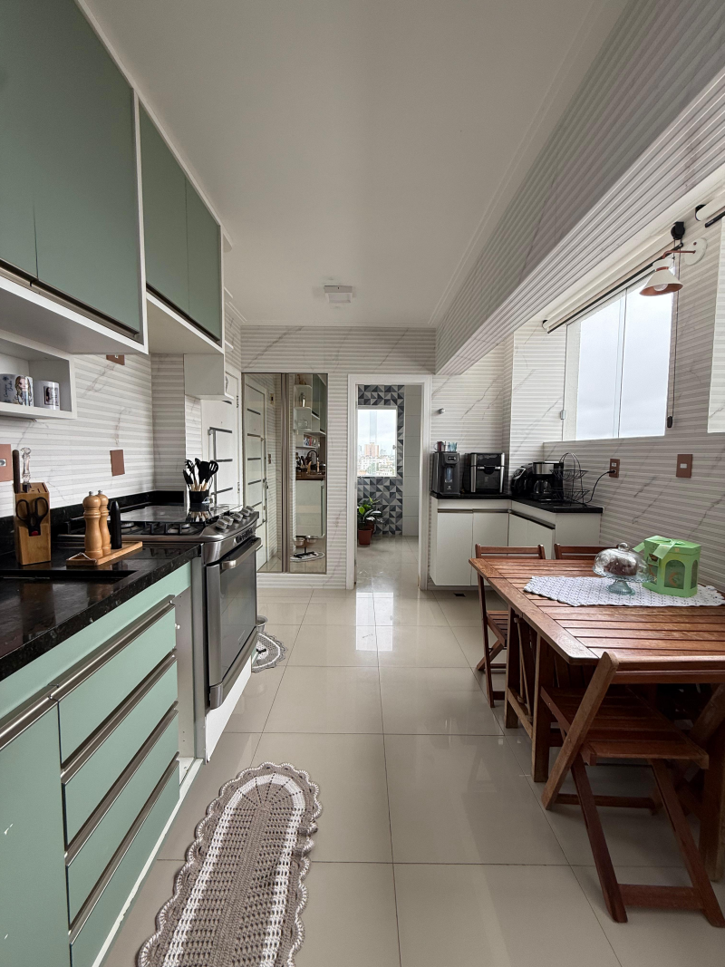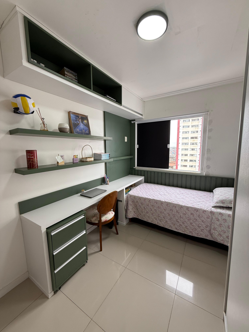Excelente apartamento para venda, 105m2 de área privativa, nascente total, todo reformado, 03 quartos, sendo 01 suíte, varanda incorporada à sala com dois ambientes, banheiro social, cozinha americana, copa, banheiro social, área de serviço com WC. A dependência de empregada foi integrada à cozinha para ampliar o ambiente, armários planejados, 02 vagas de garagens cobertas, Torre única, com apenas 12 andares, 02 apartamentos por andar, 02 elevadores, playground e salão de festas. Portaria 24 horas.