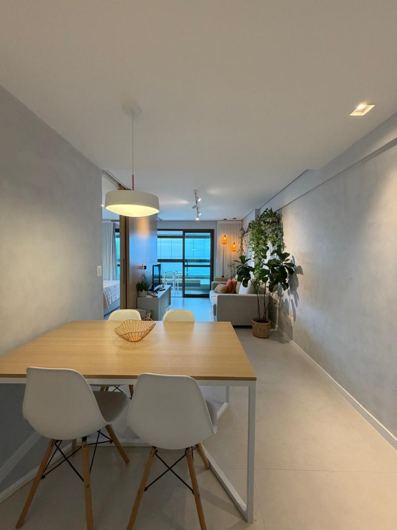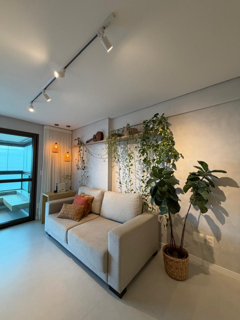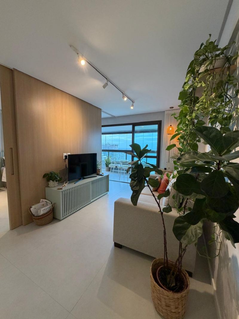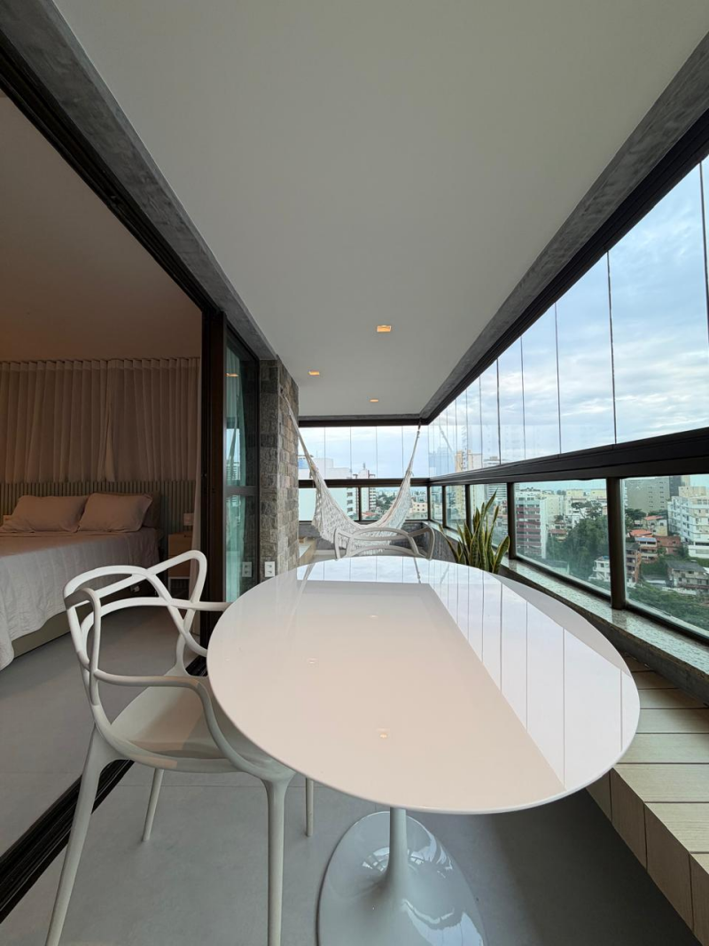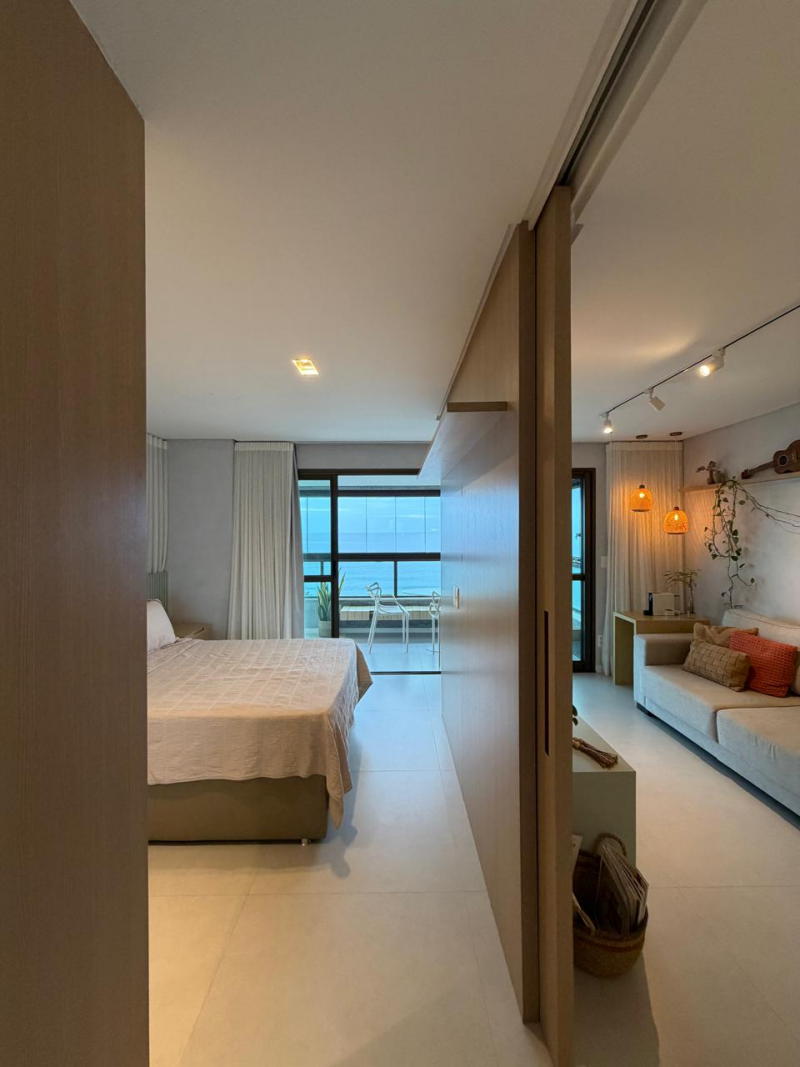 Lindo e amplo loft de 01 quarto com suíte, 63m2, de área privativa, mobiliado e decorado, linda vista para o mar, varandão em L, living, cozinha e área de serviço com ventilação natural, 01 vaga de garagem.