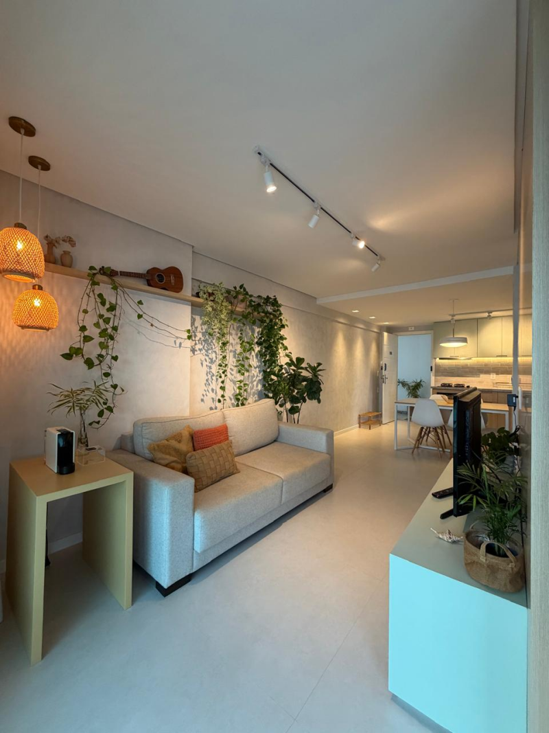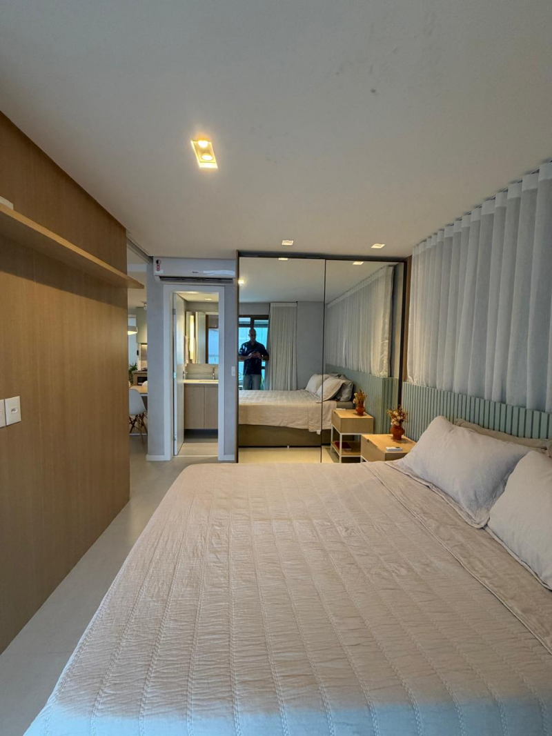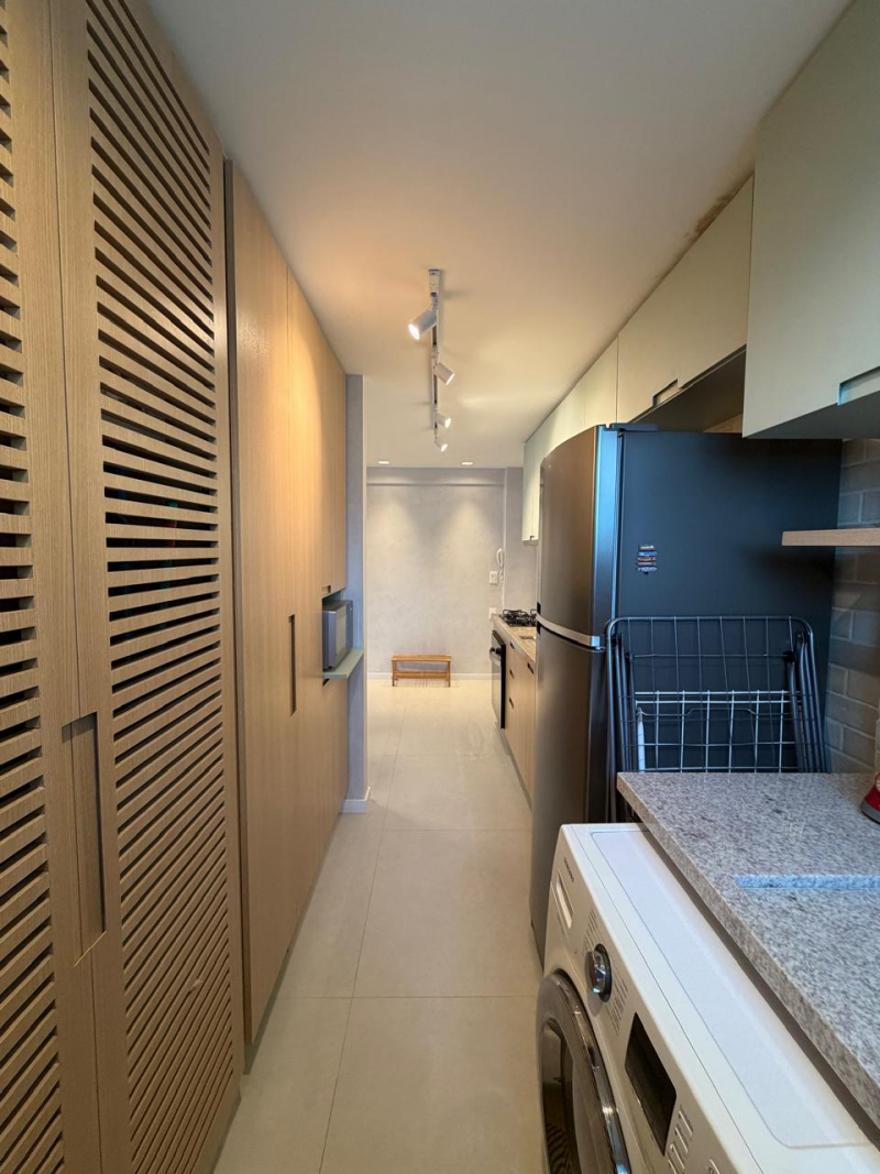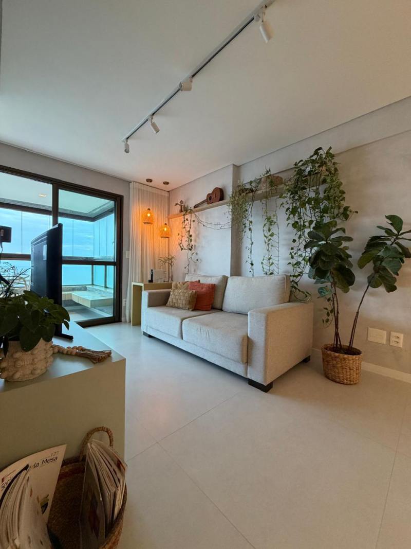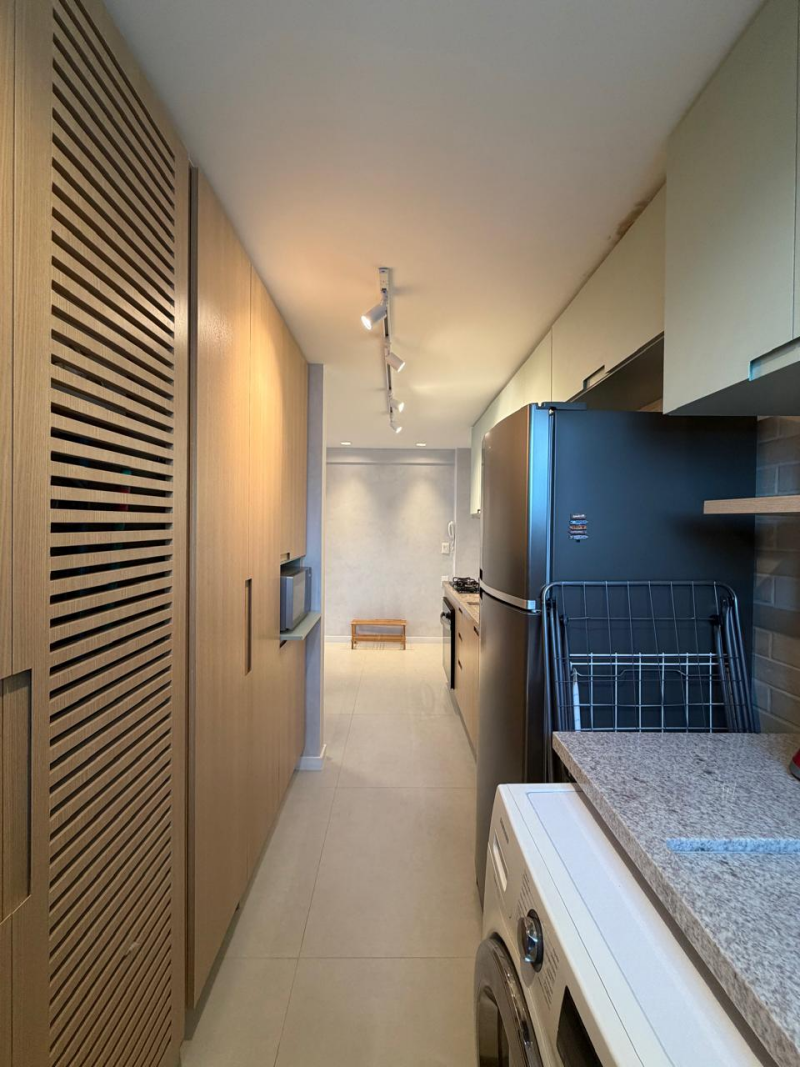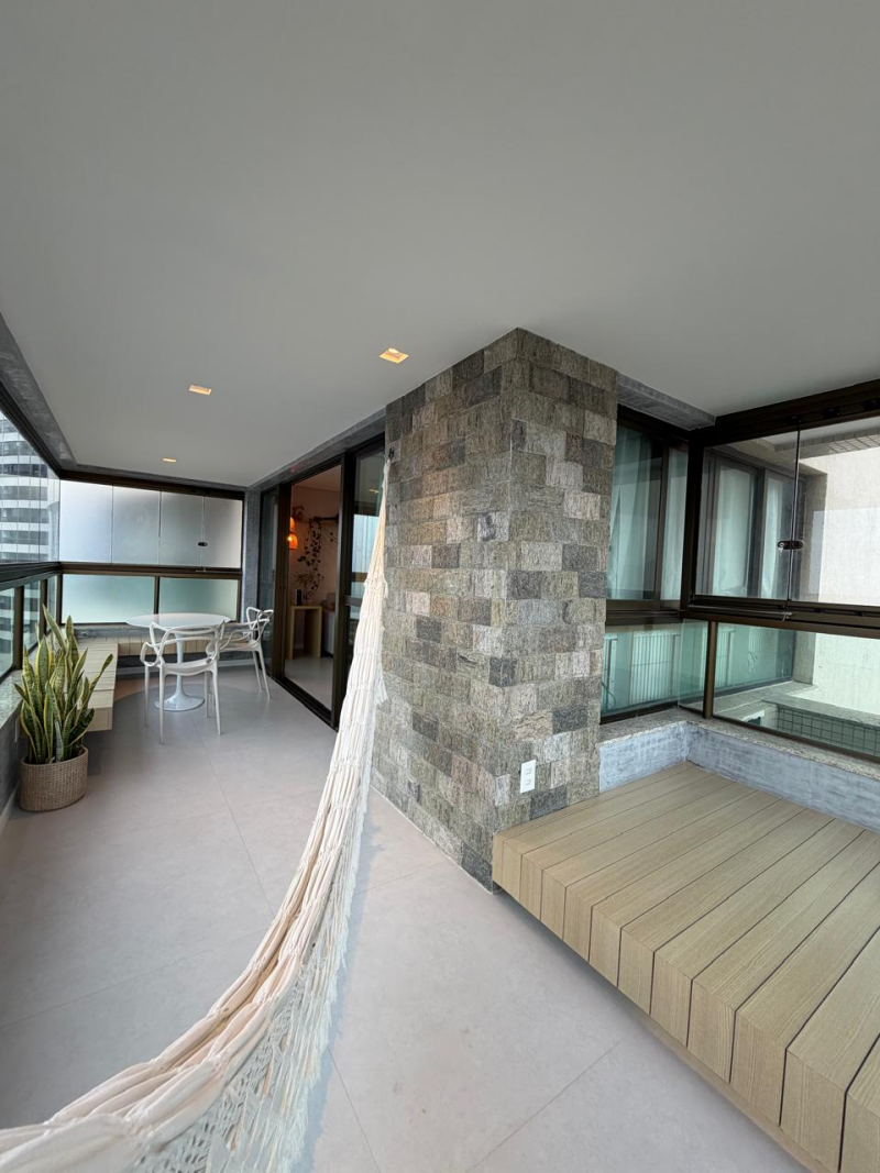 Lindo e amplo loft de 01 quarto com suíte, 63m2, de área privativa, mobiliado e decorado, linda vista para o mar, varandão em L, living, cozinha e área de serviço com ventilação natural, 01 vaga de garagem.