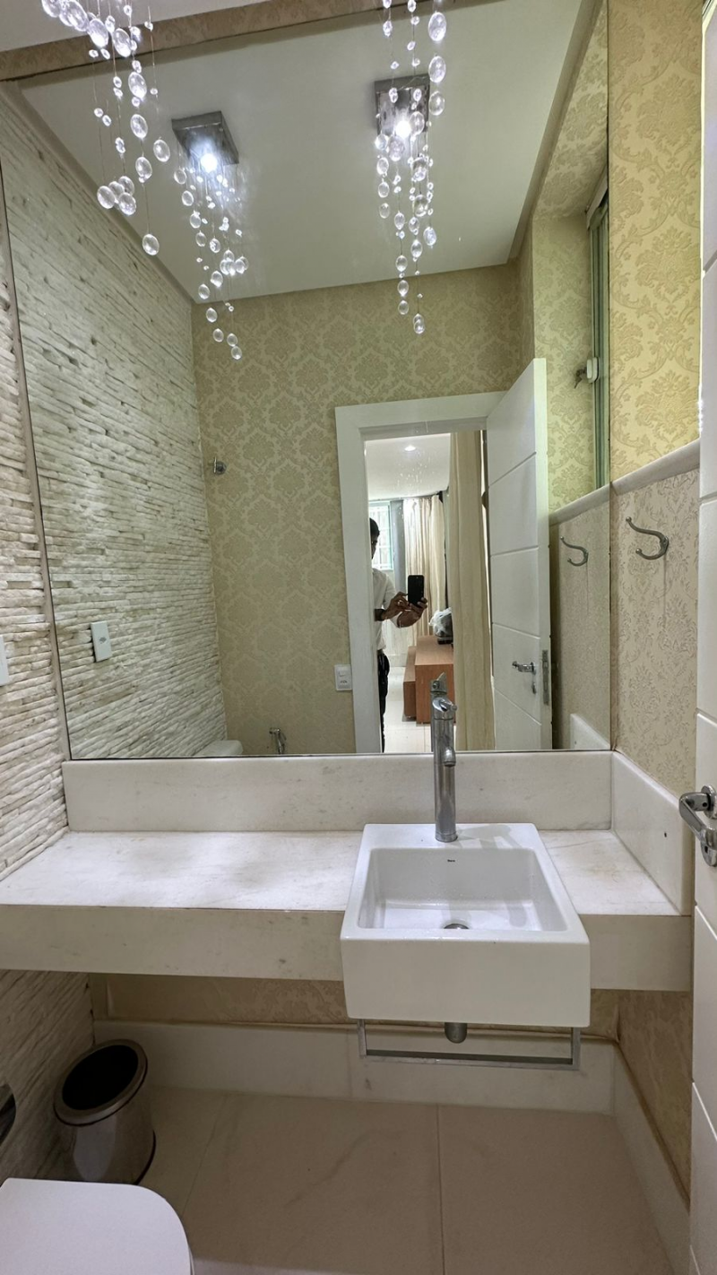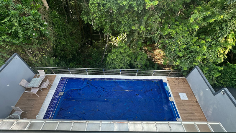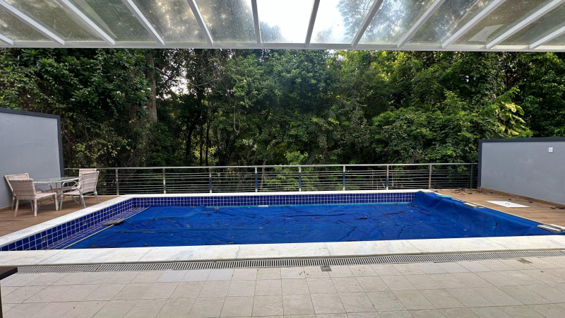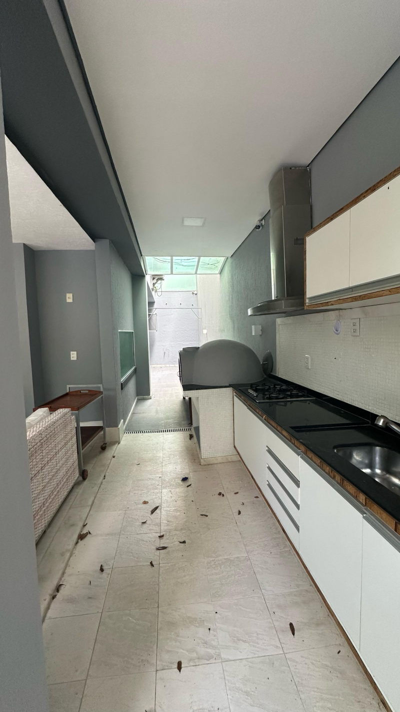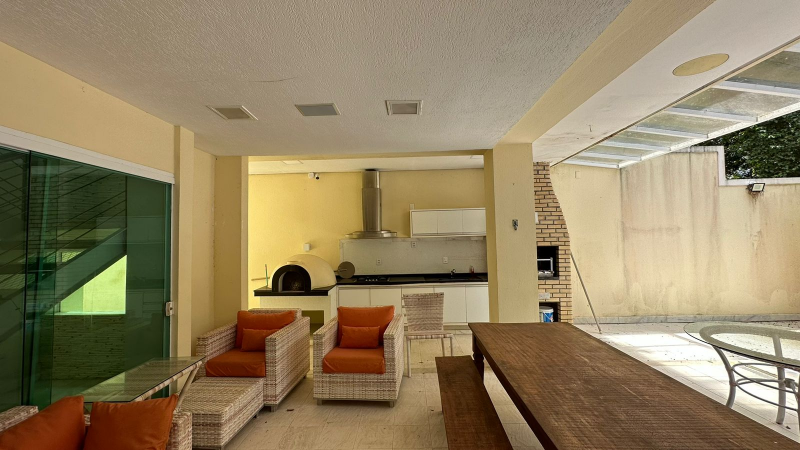 01 suíte, 01 gabinete, sanitário de apoio para piscina, excelente área gourmet, piscina, sauna, ducha para banho, área de serviço, dependência de empregada, depósito.