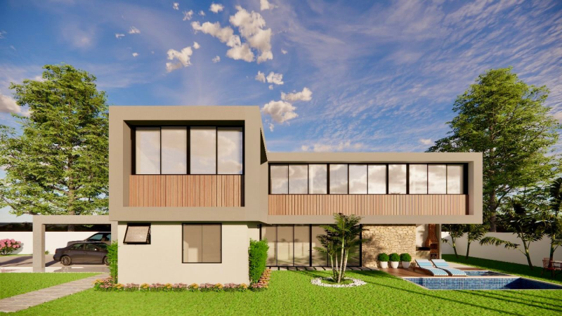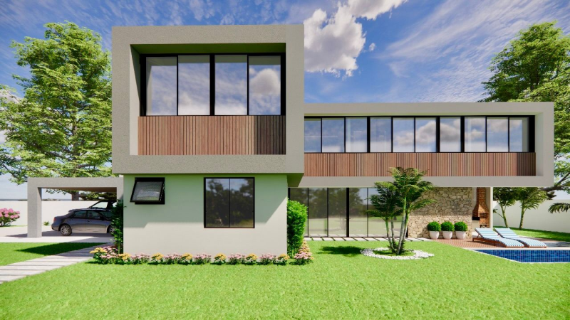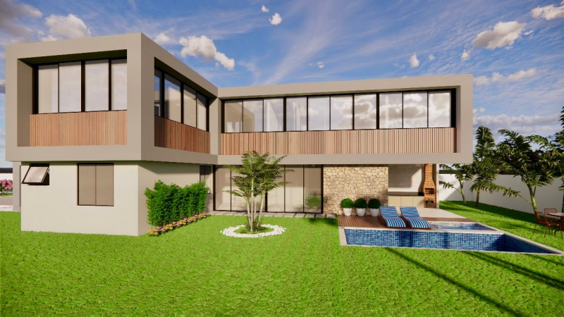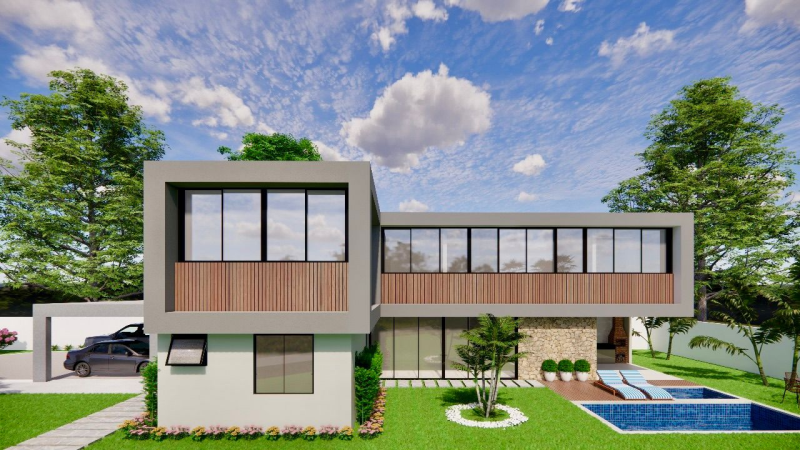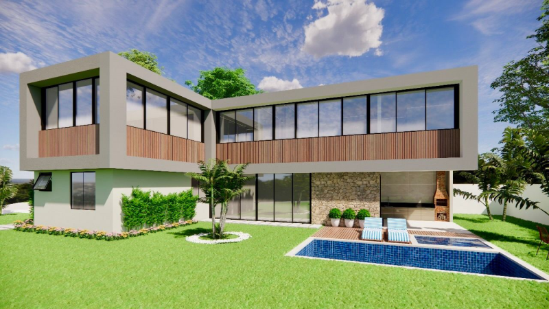 suítes, 303,68m2 de área construída, área do Terreno 1.000 m2,
