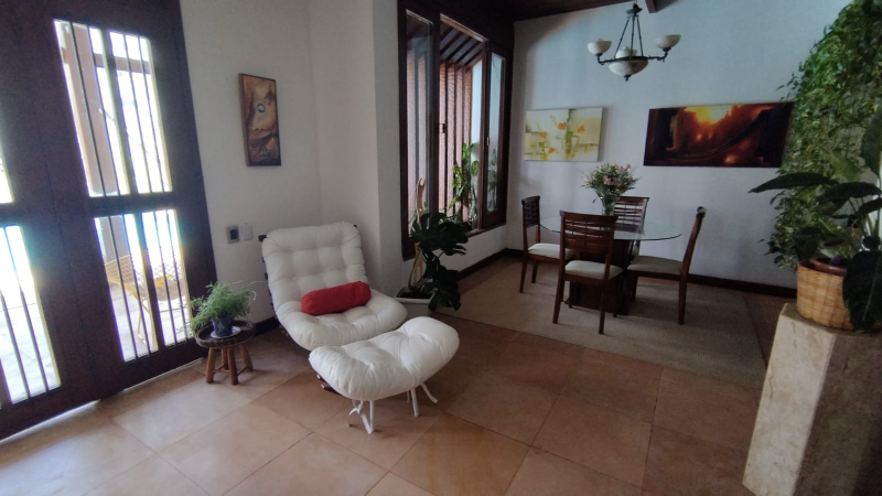 Pavimento Superior: Sala de estar intimo, banheiro Social, 03 quartos sendo 02 suítes, a Máster com banheira, varandão e sotão.