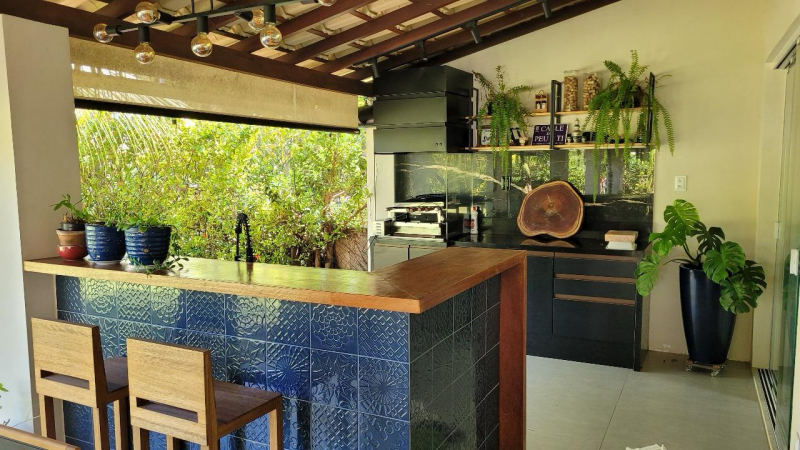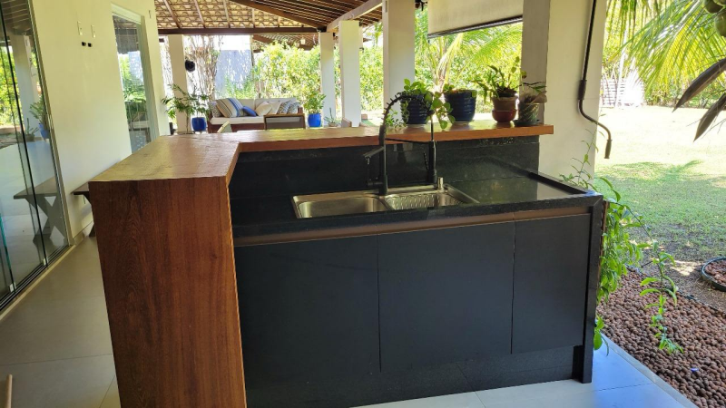 Placa de aquecimento solar, Usina solar de Iluminação, Irrigação automática do jardim, Área gourmet completa com churrasqueira e armários .