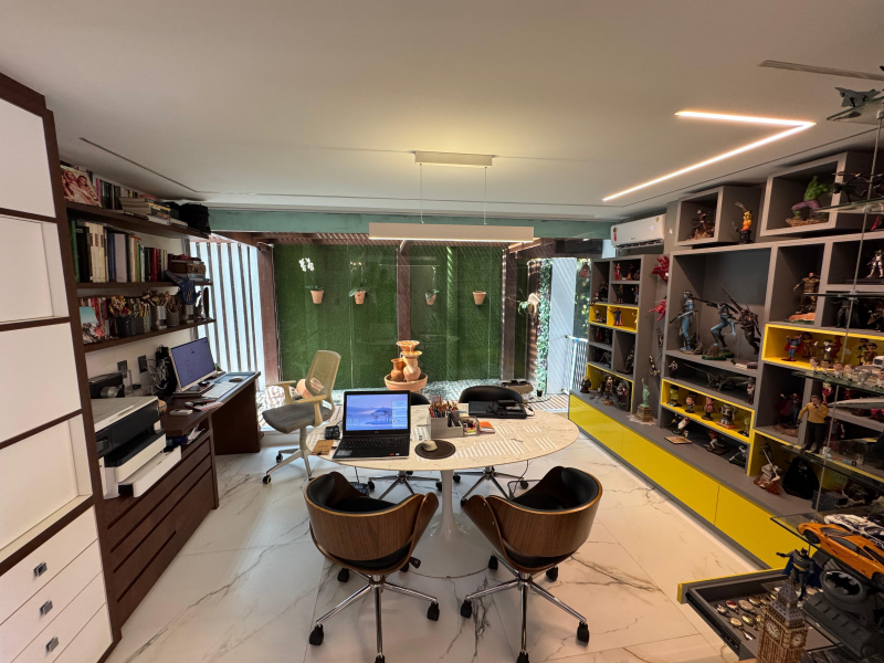 Distribuição do imóvel: Pavimento Térreo: Sala de estar e jantar, home office, sala de TV, lavabo, cozinha, área de serviço,