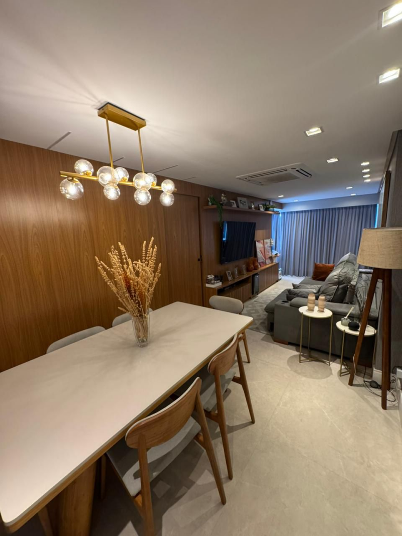 Excelente apartamento para venda, 80m2 de área privativa, 03 quartos, sendo 01 suíte, um dos quartos virou closet, mas de fácil reversão, móveis planejado em todos os ambientes, varanda gourmet incorporada à sala, cortina de vidro, cortina em linho vinílico em todo ambiente, projeto de iluminação, splits nos quartos, ar (cassete) central na sala, 01 Vaga de garagem.