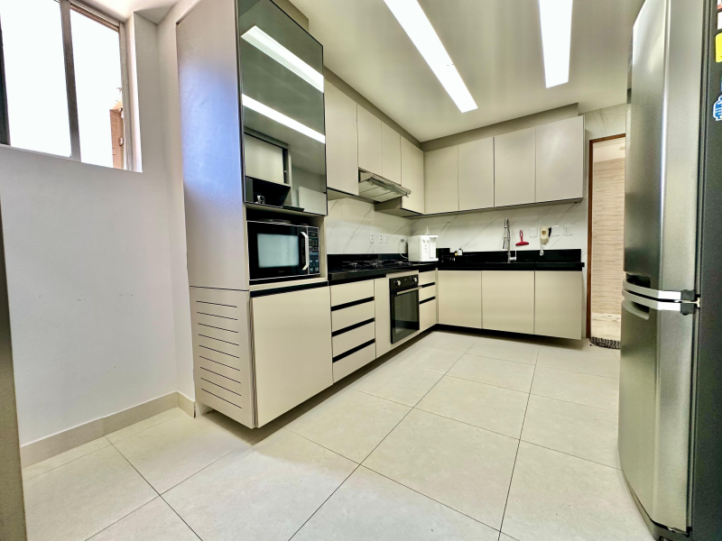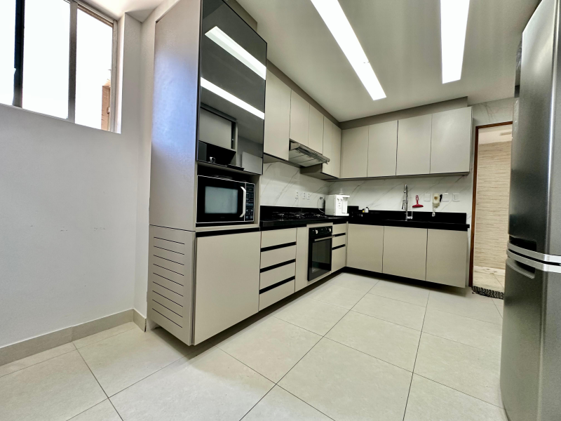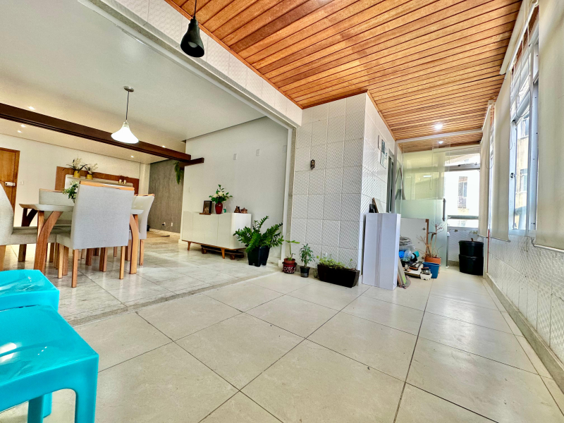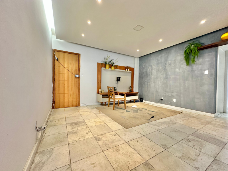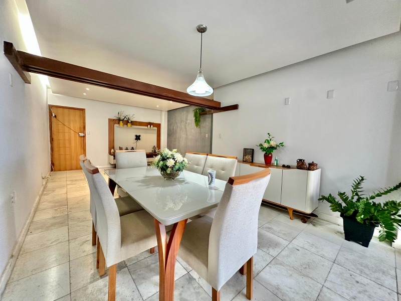 03 quartos sendo 01 suíte, sala para 02 ambientes, varanda, banheiro social, cozinha recém reformada, dependência completa de empregada,