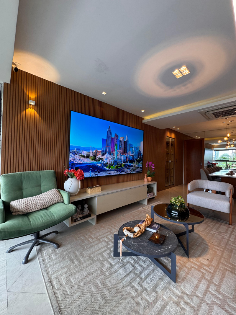 Excelente apartamento de 03 quartos, em Alphaville 1, 103m2, nascente, 01 suíte, varanda gourmet, banheiro social, cozinha, armários em alto padrão, 02 vagas de garagem cobertas . Total Infraestrutura: quadra de tênis, cinema, empório/pizzaria, mega academia, pilates, sala de estudos, brinquedoteca, piscina, SPA, sauna, meia quadra de tênis. Linda vista para Alphaville.