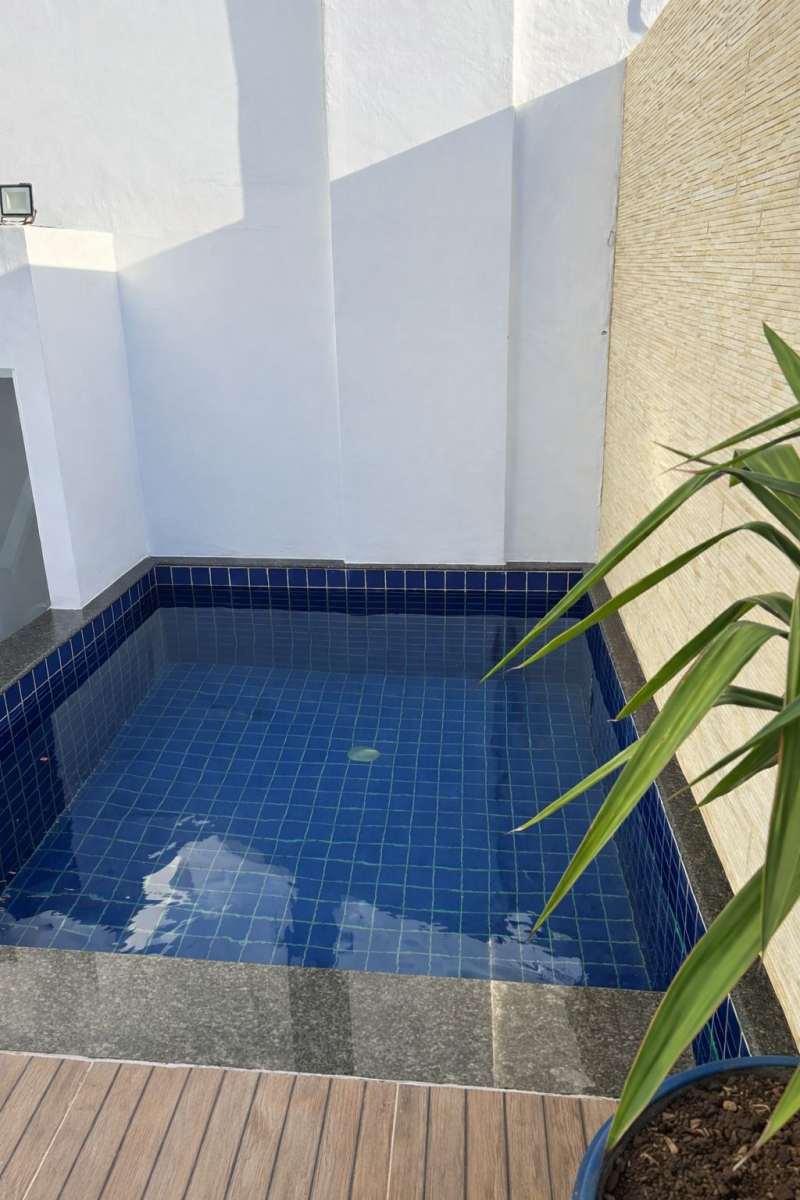 Piscina privativa, 02 quartos, sendo 01 suíte, 02 banheiros (suíte + social)