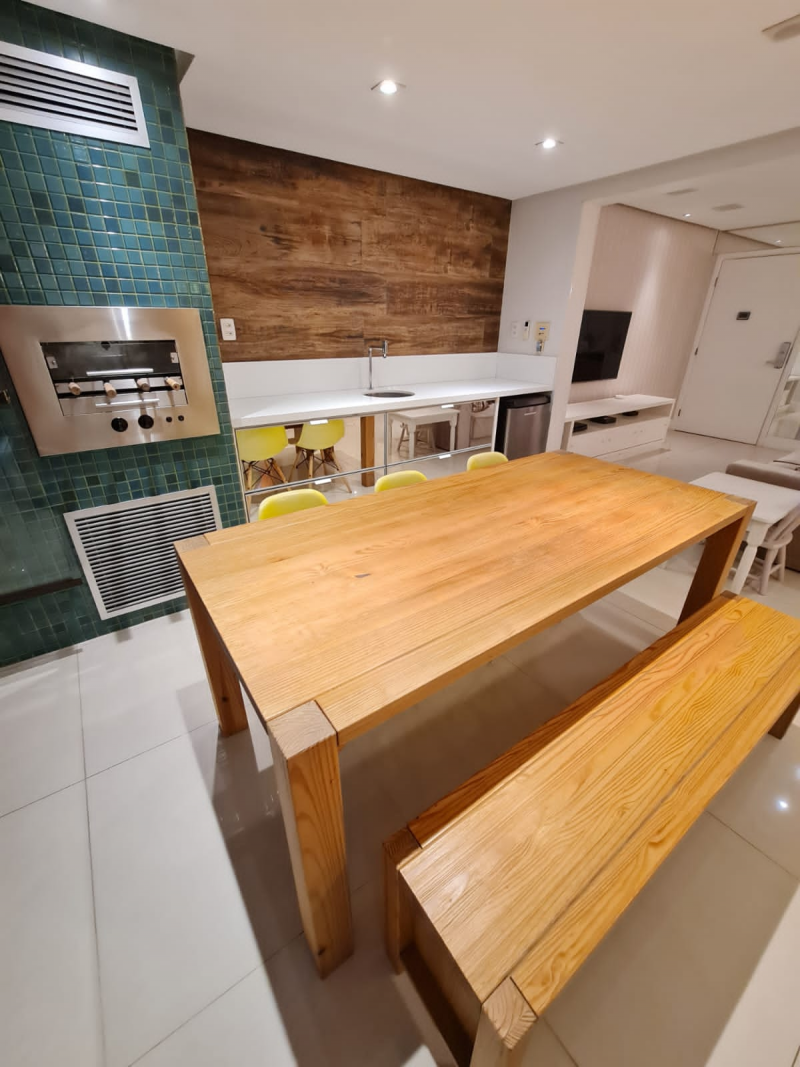 porcelanato, teto rebaixado com iluminação em led, churrasqueira, cozinha