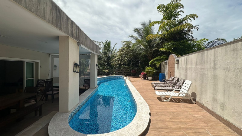 Condomínio de casas de alto padrão, piscina, quadra esportiva, academia, salão de festas, salão de jogos, playground, e churrasqueira.