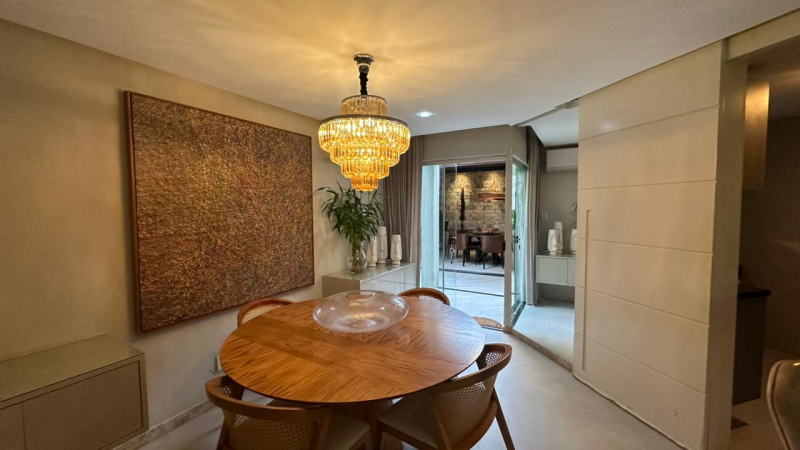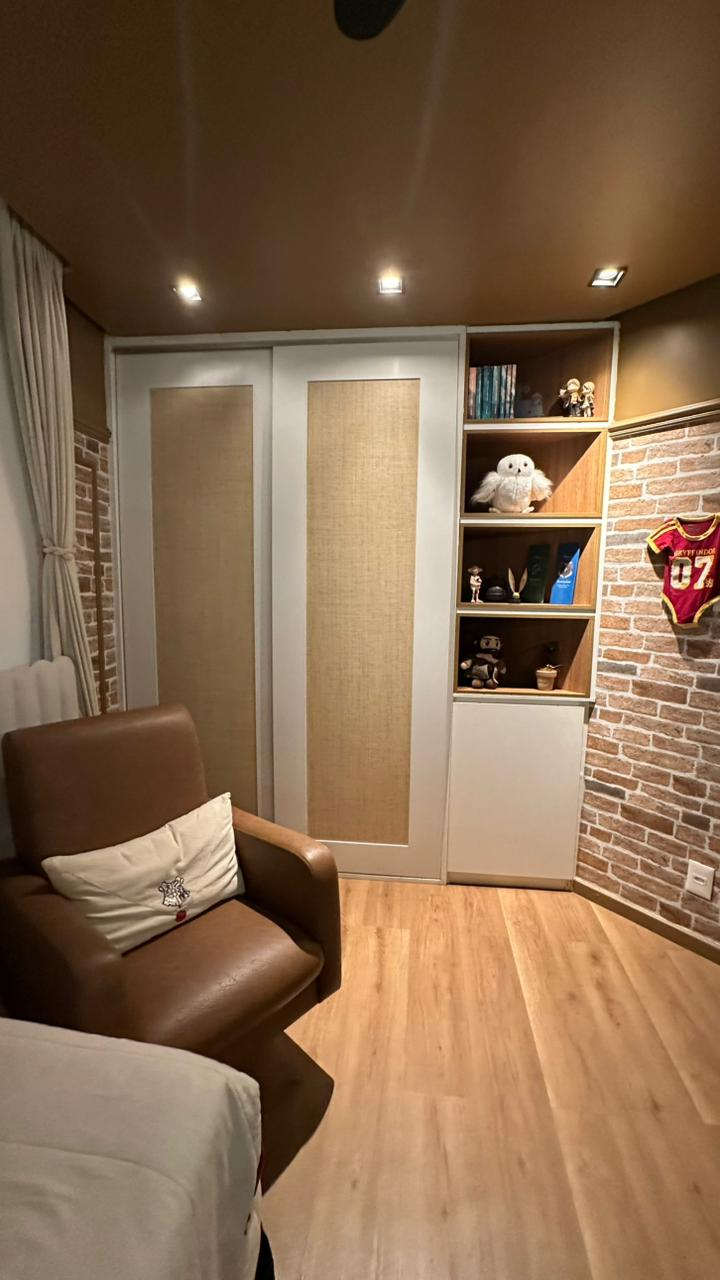 Varanda, sala de estar e jantar, lavabo, cozinha com dispensa, área gourmet, dependencia de empregada, área de serviço, armários planejados, 02 vagas de garagem, pronta para morar. Condomínio Fechado.